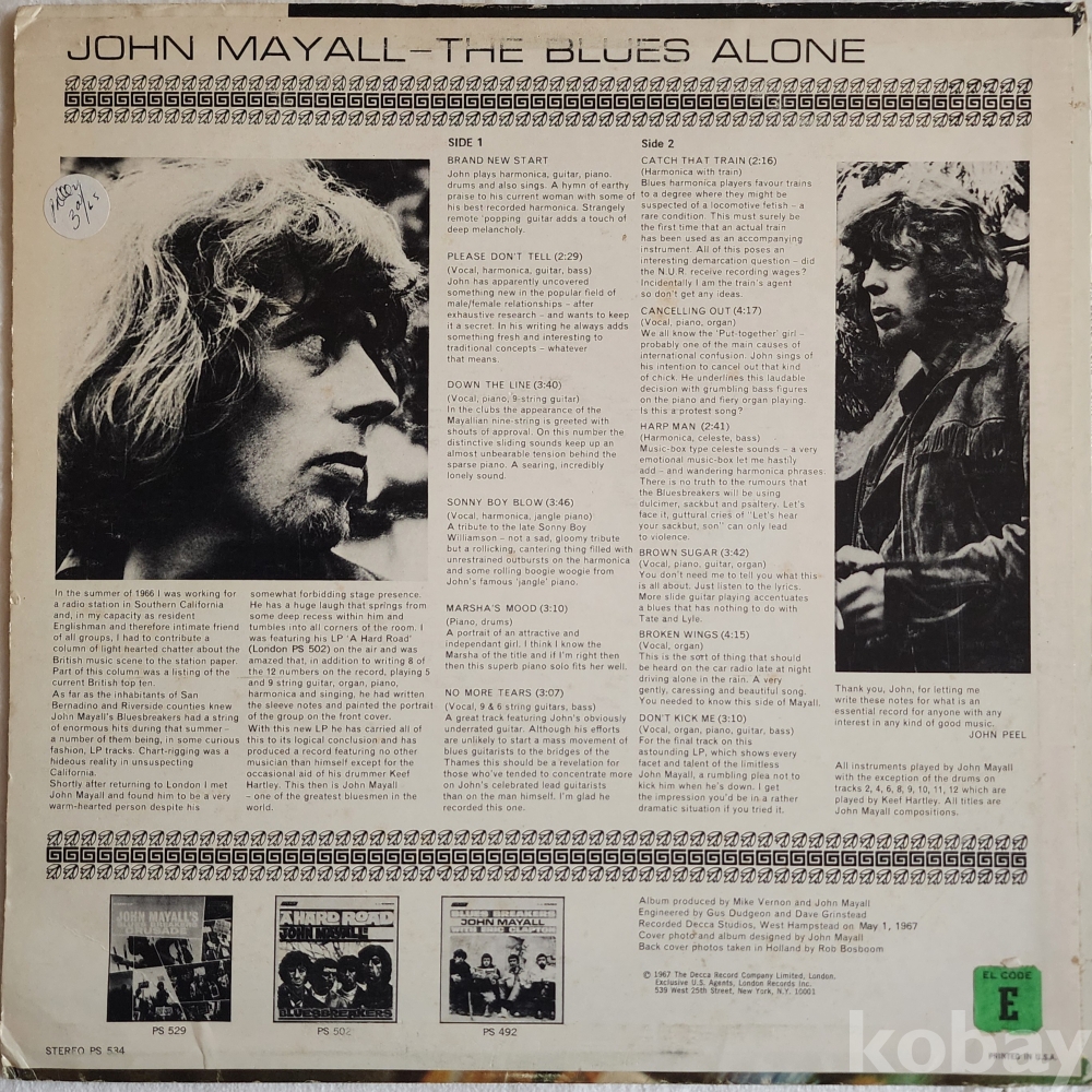 존 메이올(John Mayall) 의 앨범 The Blues Alone 커버입니 다. 이 앨범은 1967년에 발매된 그의 첫 번째 솔로 앨범으로, 드러머 키프 하틀리(Keef Hartley)의 드럼 연주를 제외하고 모든 악기(하모니카, 키보드, 기타, 베이스 등)를 존 메이올 본인이 직접 연주하고 오버더빙하여 녹음했 습니다.