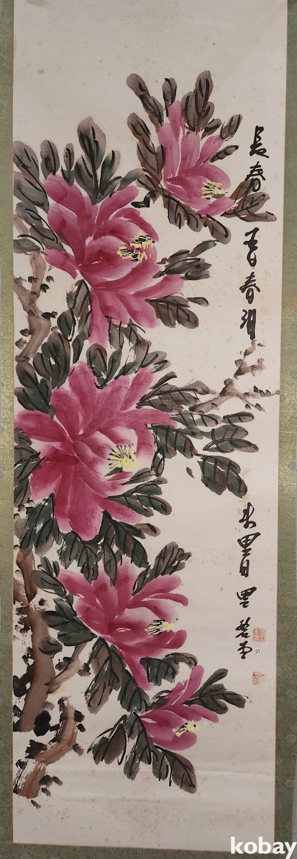 한국화가 수결이 보이는 꽃그림입니다,