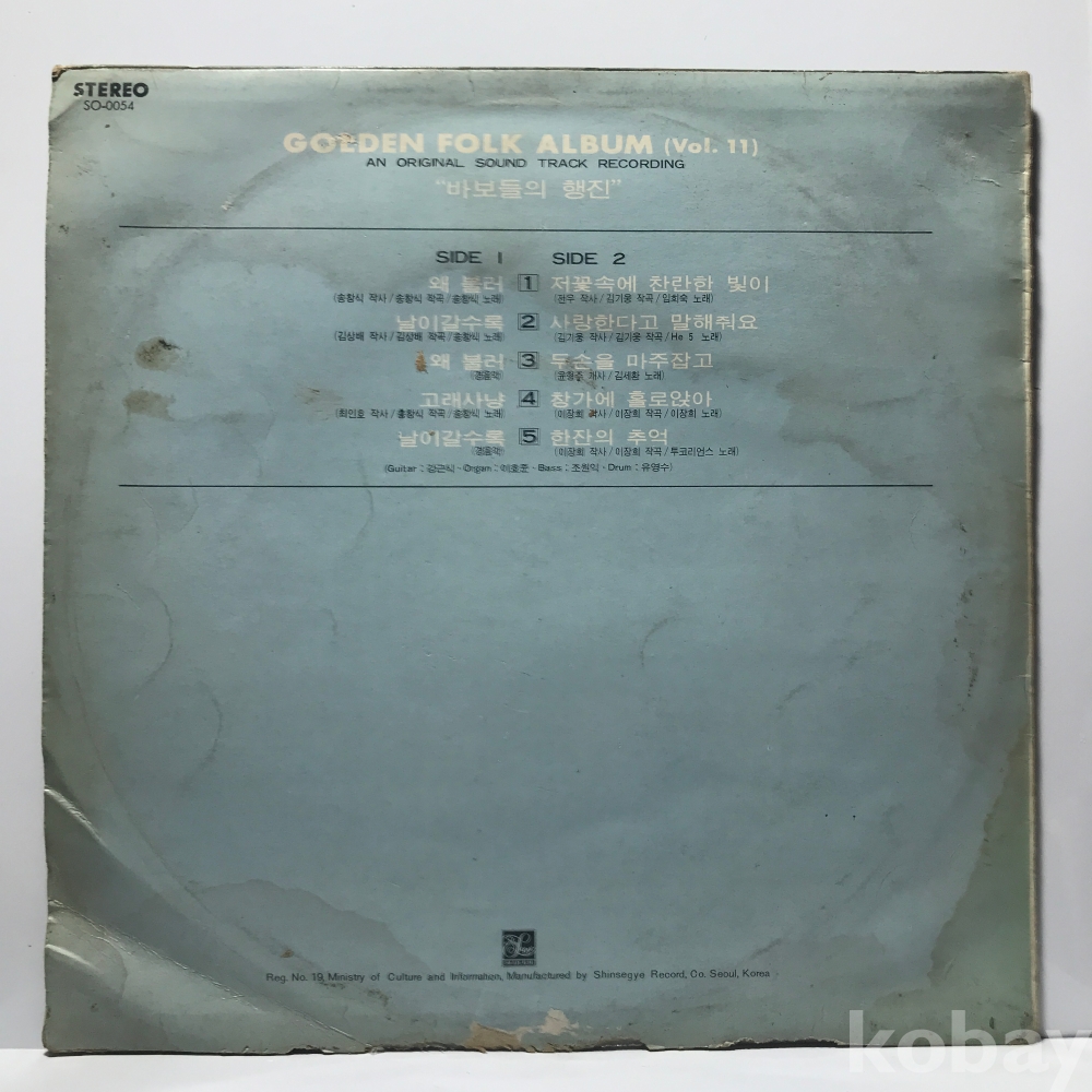 | 자켓상태 | VG : 주름, 접힘, 모서리 찢김 다수 | 음반상태 | VG : 생활 기스 다수, 가벼운 노이즈 존재 | 발매정보 | 알수없음 | 가사지여부 | 무 |