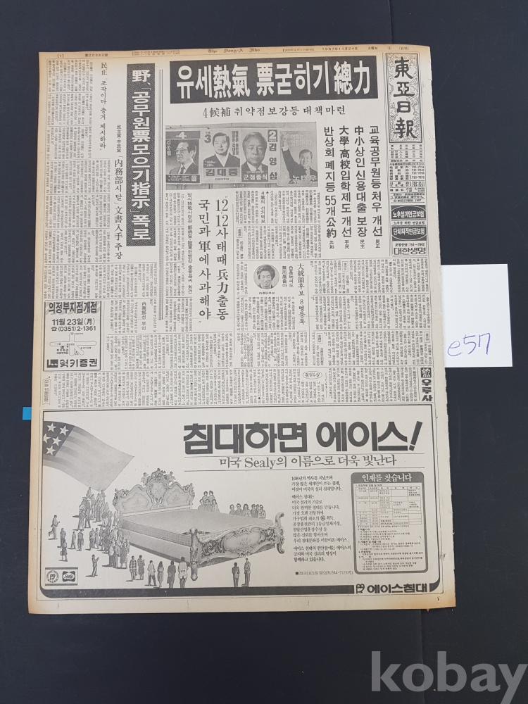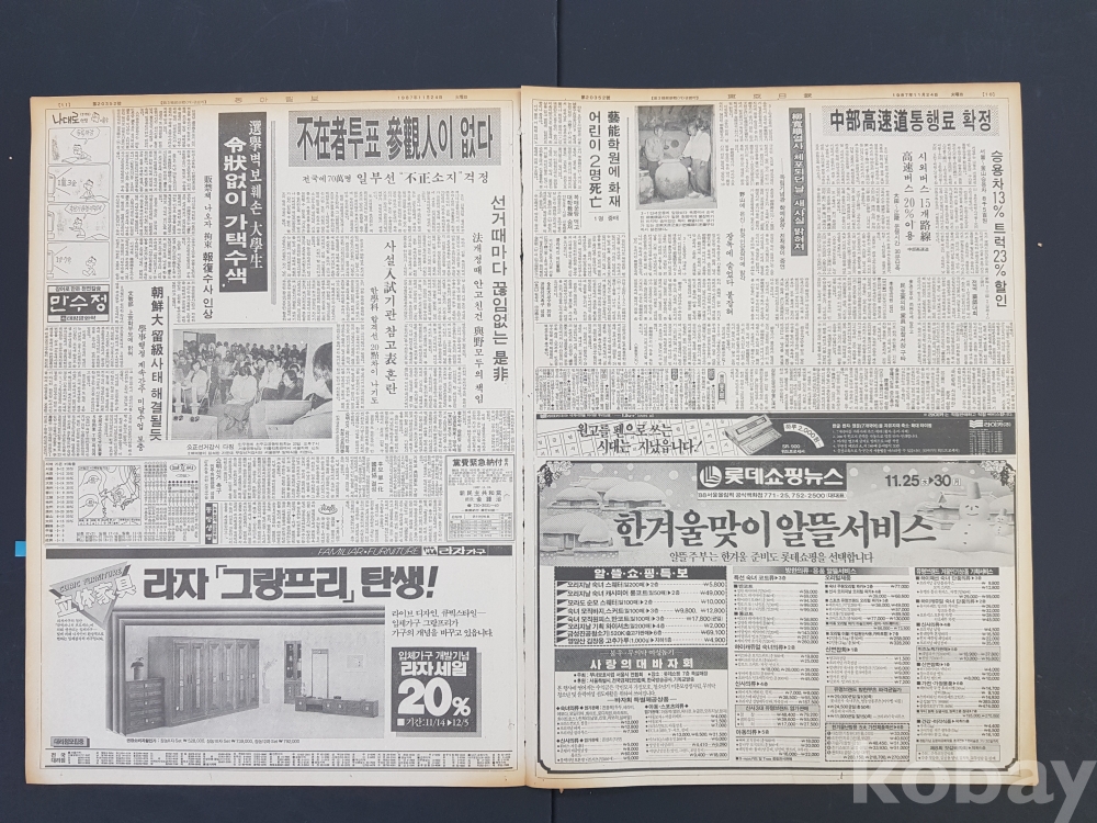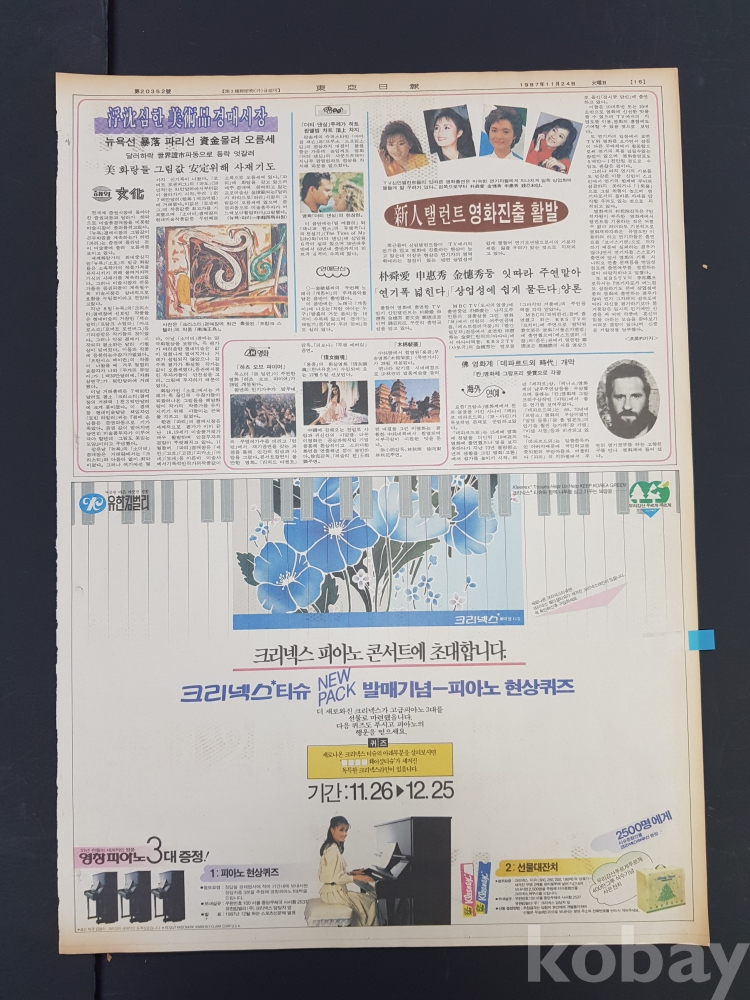 **** 1987.11.24(동아일보)/유한킴벌리 크리넥스티슈발매기념 피아노현상퀴즈 광고 등/16면