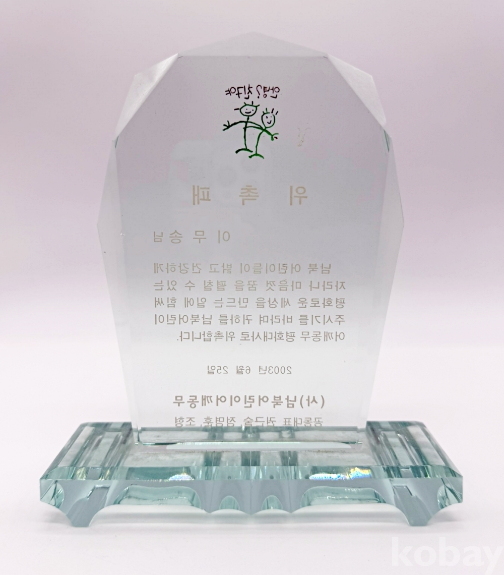 상품명 | 2003년 (사)남북어린이어깨동무 평화대사 '이무송' 위촉패 | ||