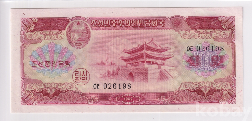 - 1959년 2차 오리지널 투문 10원 미사용 지폐 소련(현 러시아)인쇄 입니다.