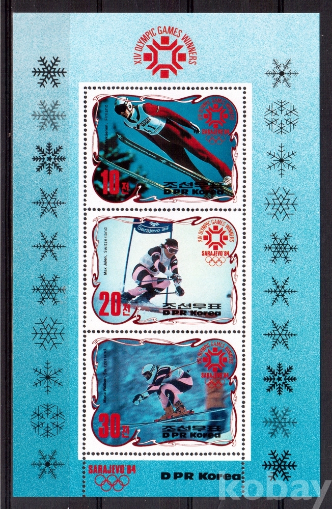 (동계올림픽) 북한 1984.5.20 제14차 (사라예보)겨울철올림픽경기대회 우승 sheetlet of 3 MNH