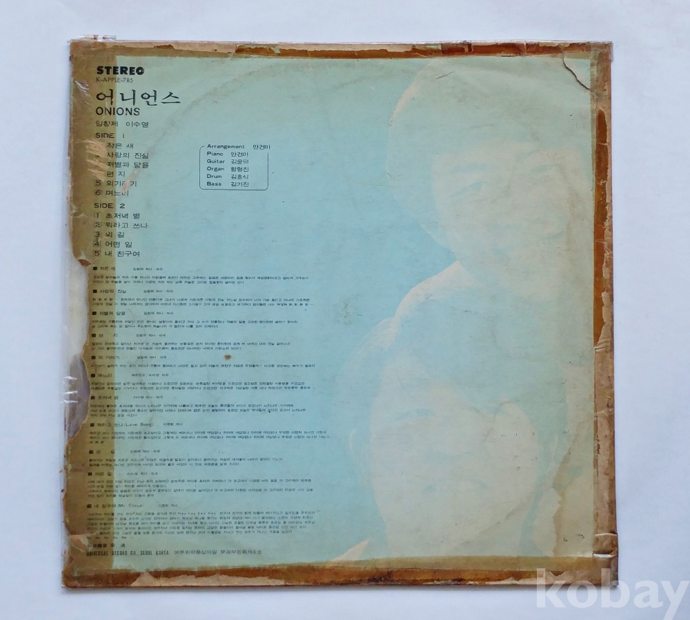 | 자켓상태 | VG : 주름, 접힘, 모서리 찢김 다수 | 음반상태 | EX : 재생에 영향 없는 가벼운 기스 존재 | 발매정보 | 알수없음 | 가사지여부 | 무 |