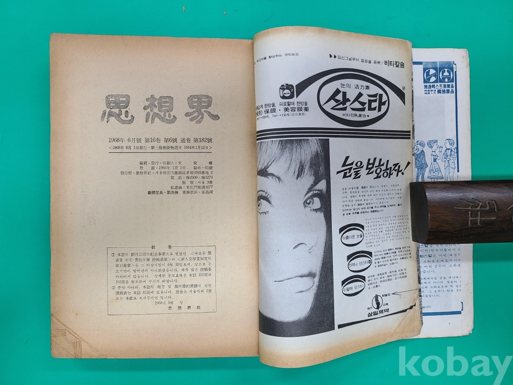 ▶사상계(1968년 6월호)/사상계사,344쪽/전체적으로 헐었고, 얼룩있음