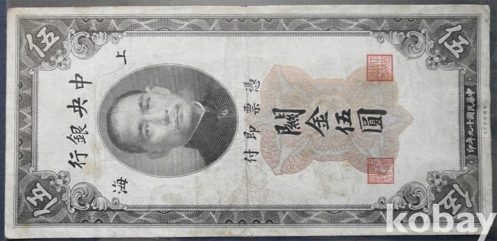 중국 중앙은행5원 민국19년