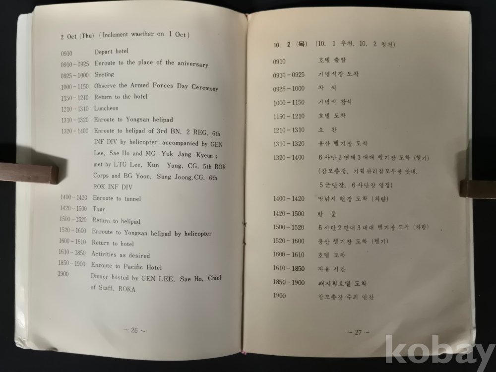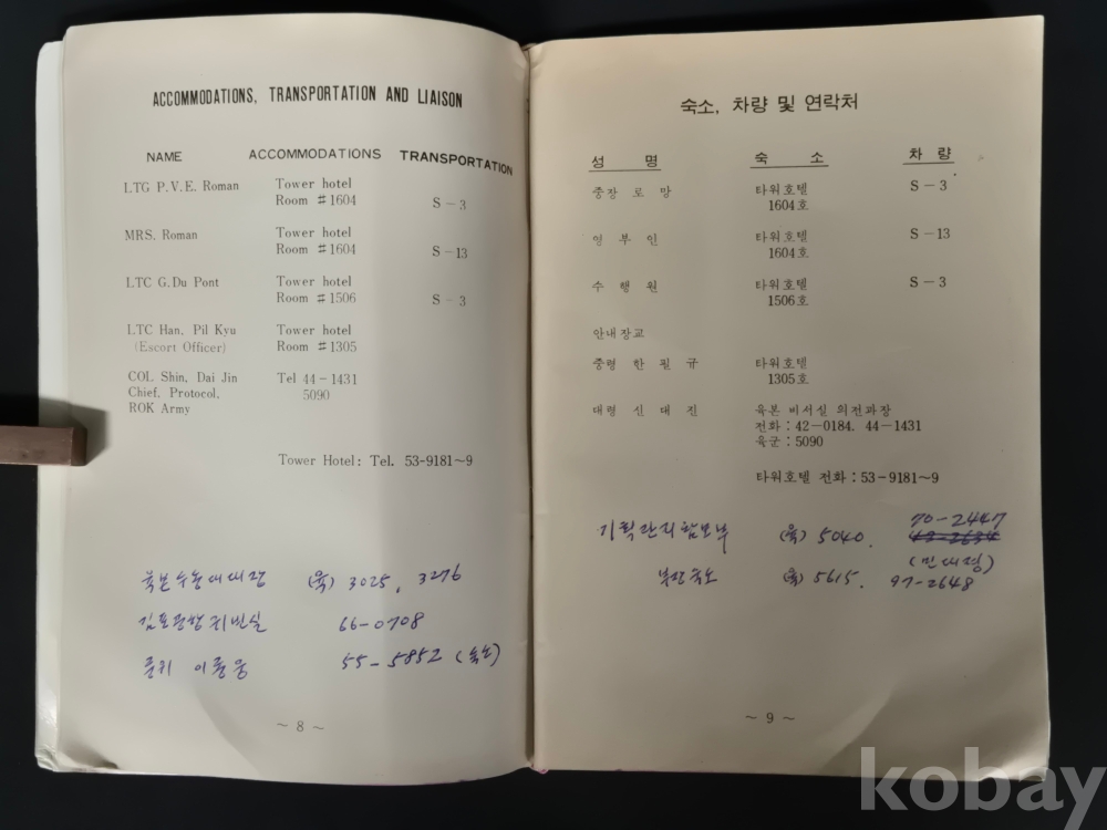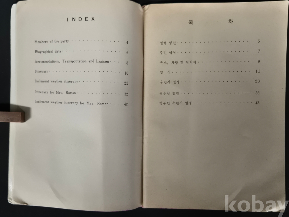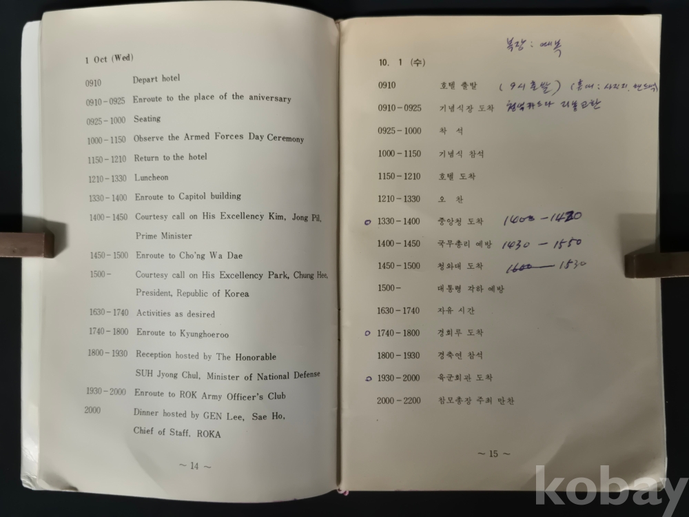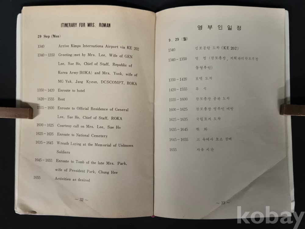 - 책자 경호 및 일정에 대한 메모 등이 있으며, 세월의 흔적이 있습니다. 낱장 없는 상태 입니다.