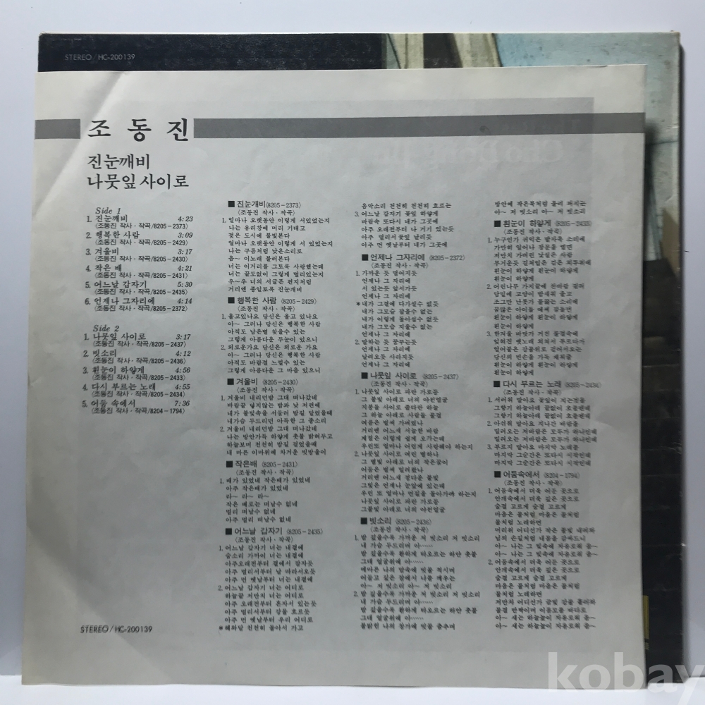 LP 30,900-273 조동진 베스트 - 진눈깨비/ 나뭇잎 사이로 . 82 한국 자켓 EX 알판 EX EX+