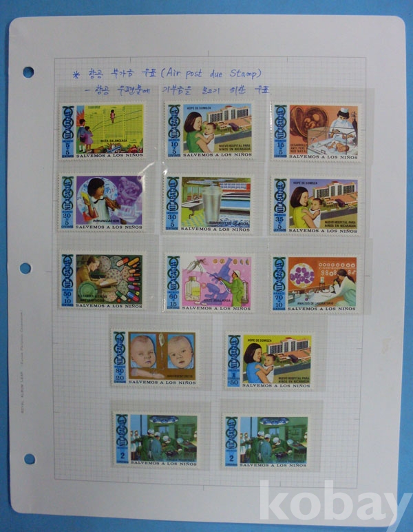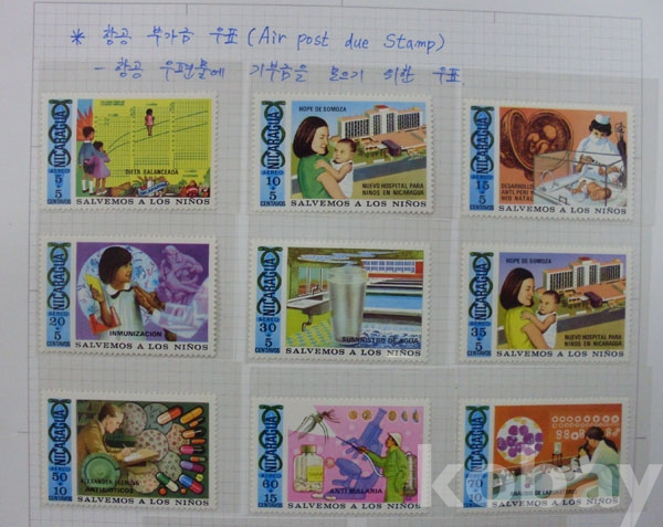 니카라구아에서 발행한 항공부가금 우표 (AIR POST DUE STAMP) ※ 항공으로 배송되는 우편물에 기부금을 부가하기 위하여 발행한 우표