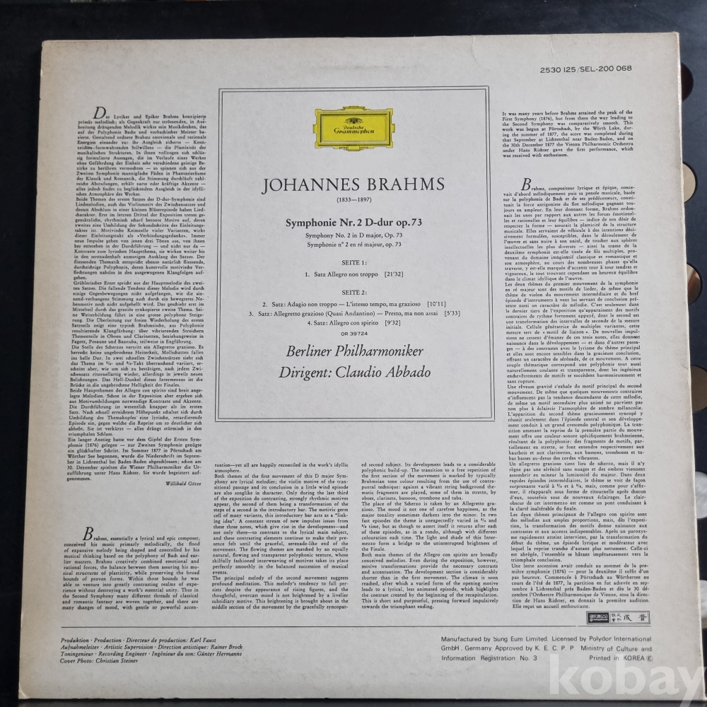소장용 클래식 중고 음반으로 상태 아래와 같으며 많은 관심 바랍니다.