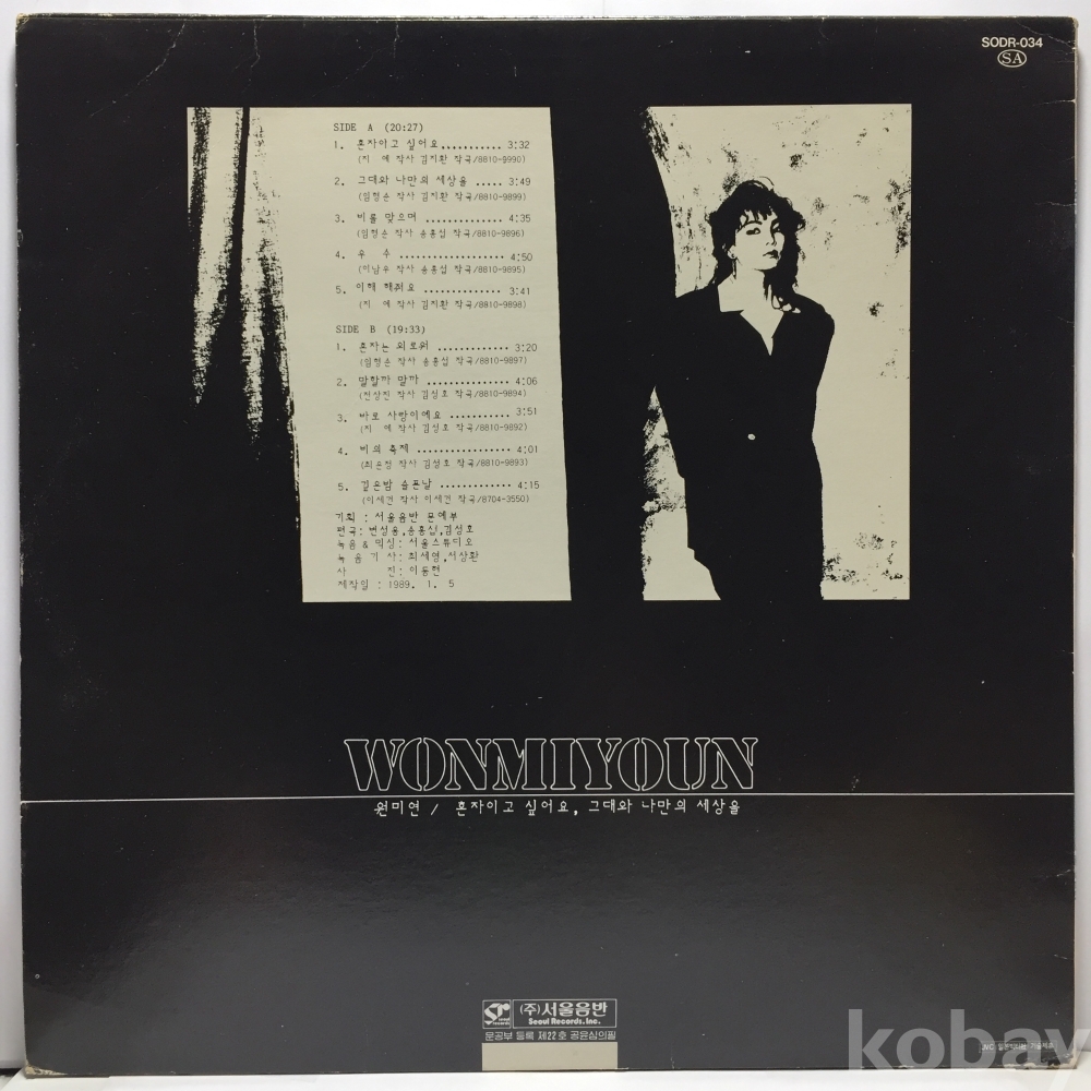 LP 81,300-52 원미연 - 혼자이고 싶어요 자켓 EX+ EX EX+ 89 년 국내반