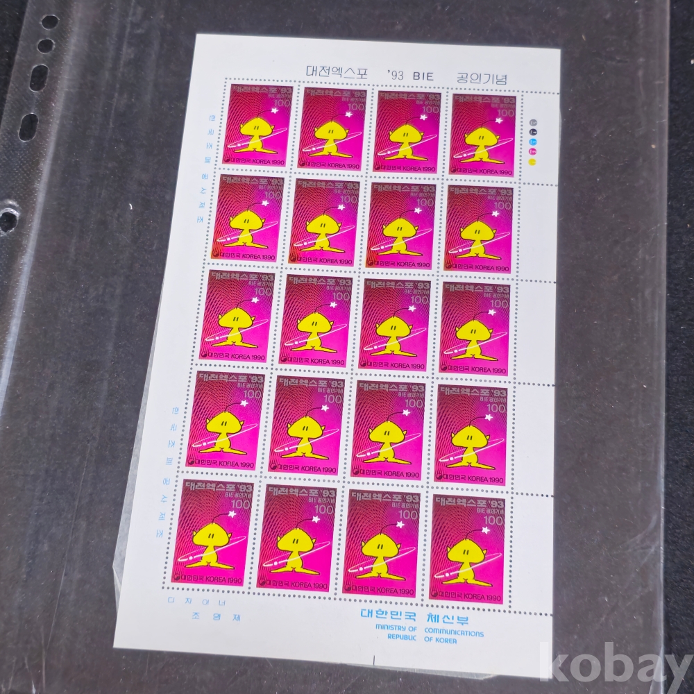 (천원경매) (((우표/전지/쉬트))) 1993년 대전 엑스포기념 꿈돌이 우표전지 (미사용)