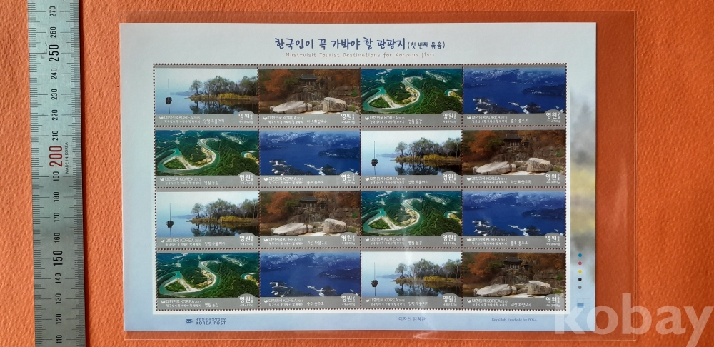 한국인이 꼭 가봐야 할 관광지 첫번째 묶음 영원우표 16매 전지 입니다.