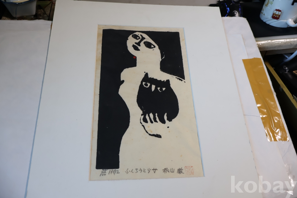 일본 현대 목판화의 대가 아키야마의 명화 임니다 에시드 프리 종이 매트를 가진 명화 임니다 사진 참조 하세요