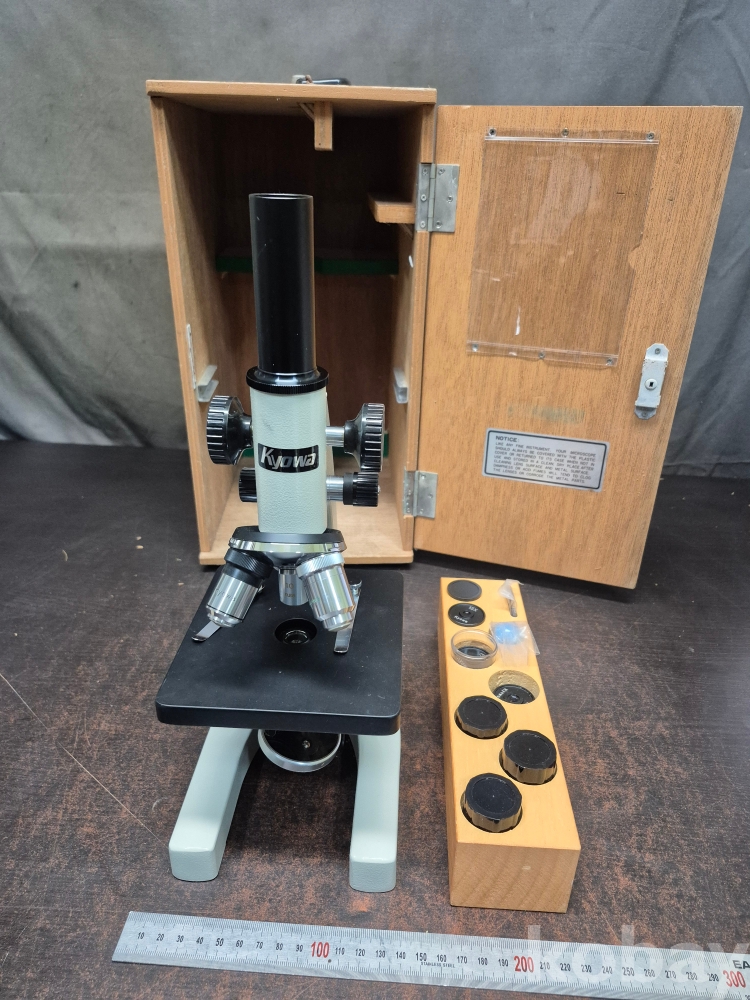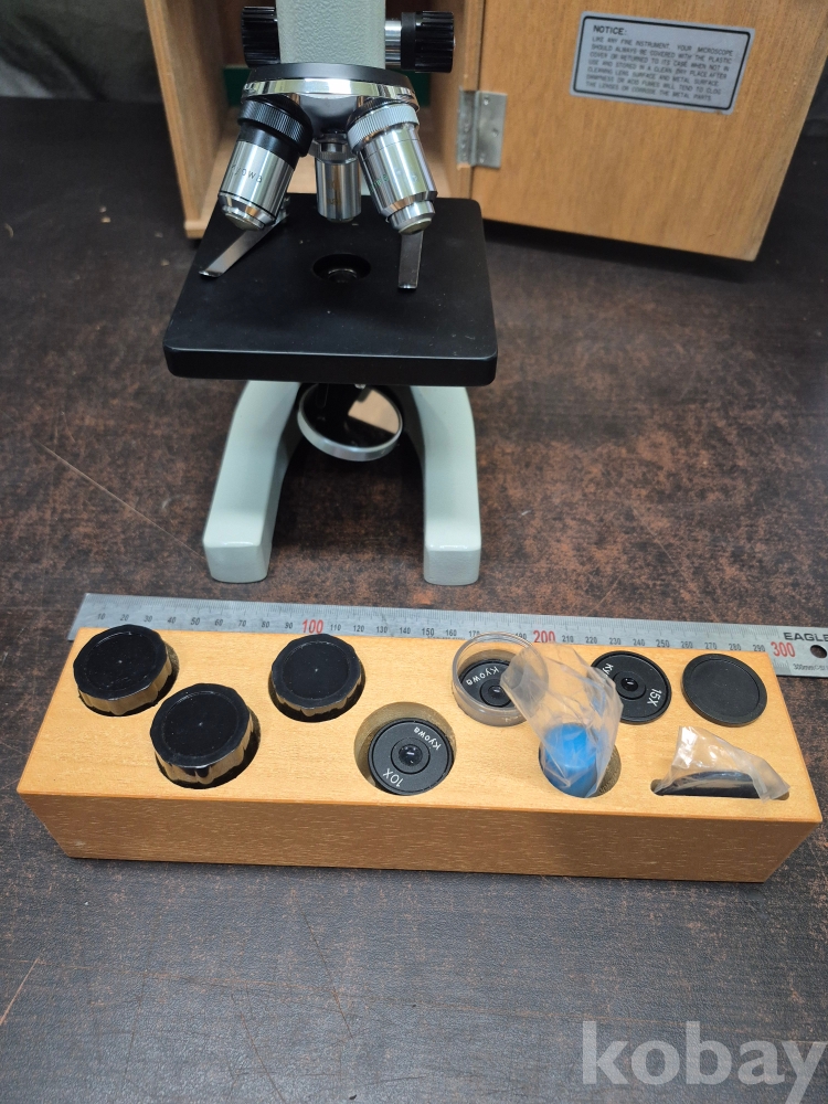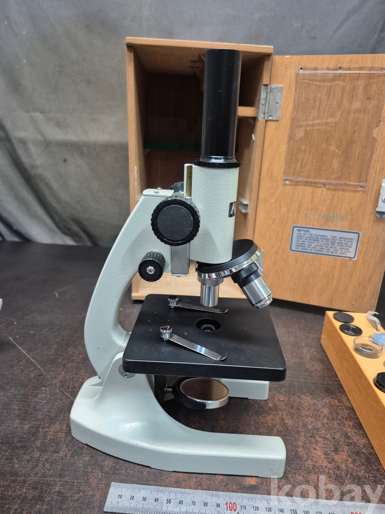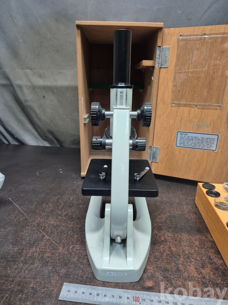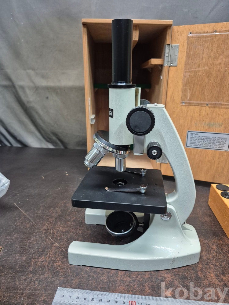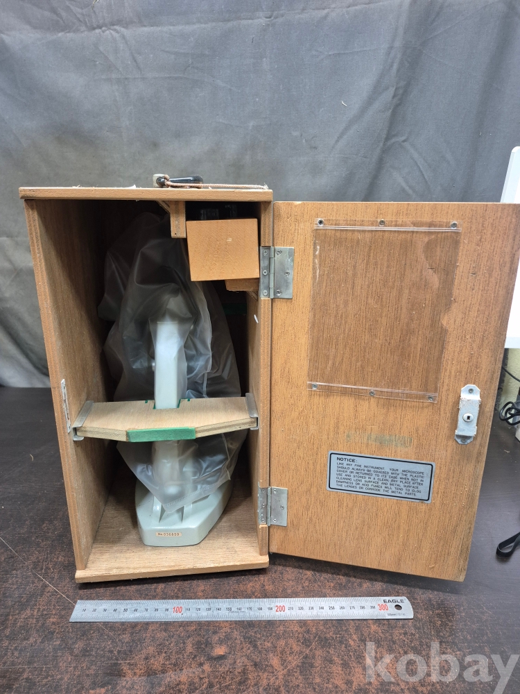 1960-70년대 미사용급 원목케이스에 들어 있는 국민학교 실사용 현미경