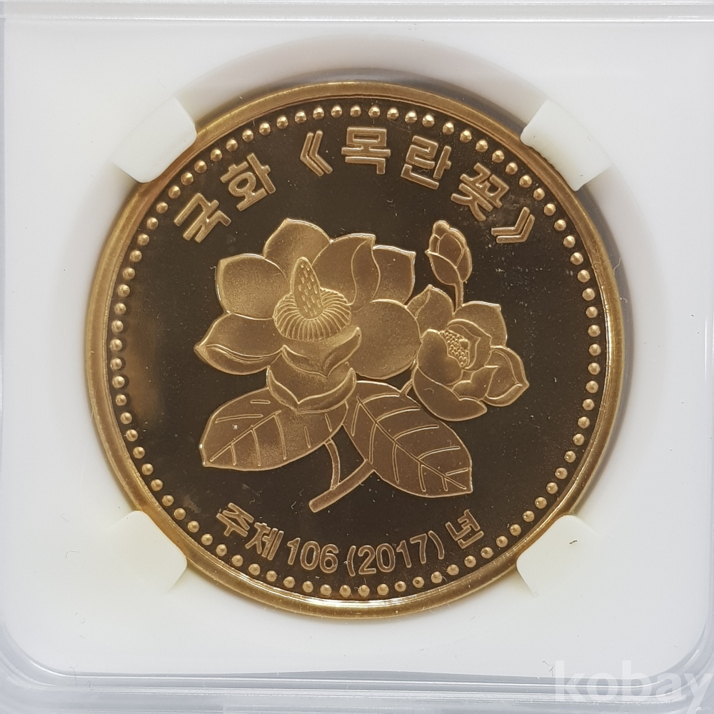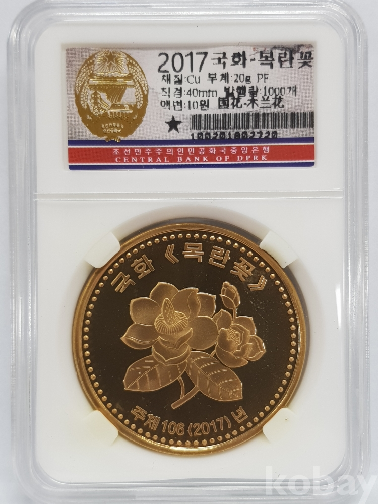 - 2017년(주체106) 국화 - 목란꽃 10원 프루프 인증 주화