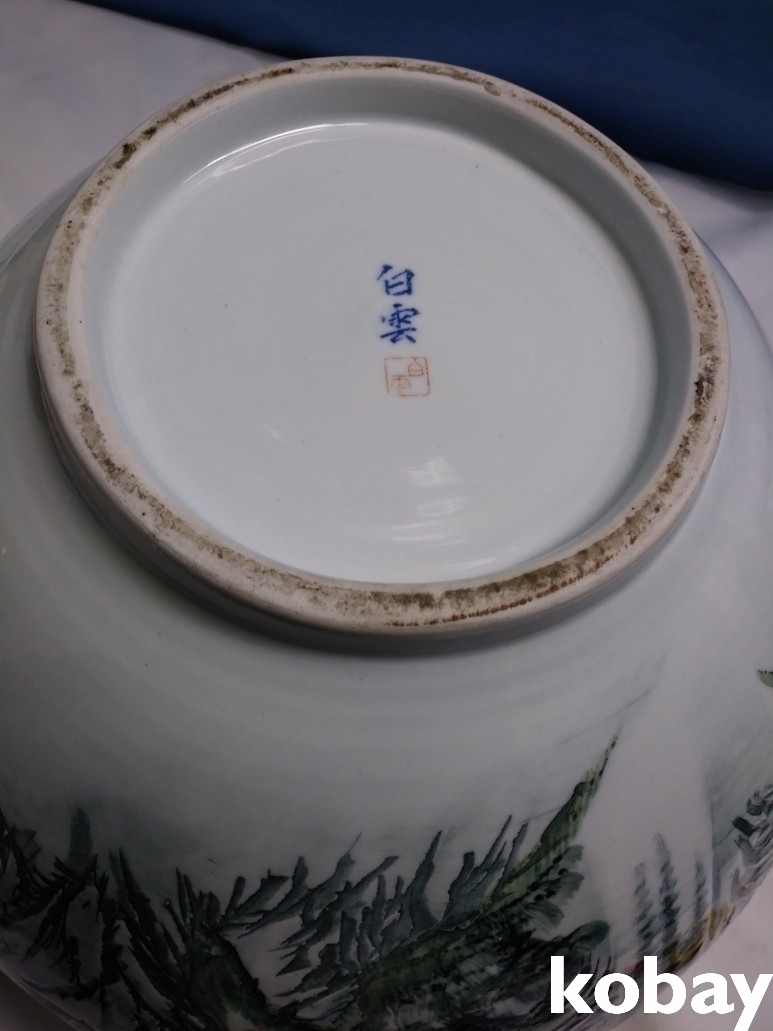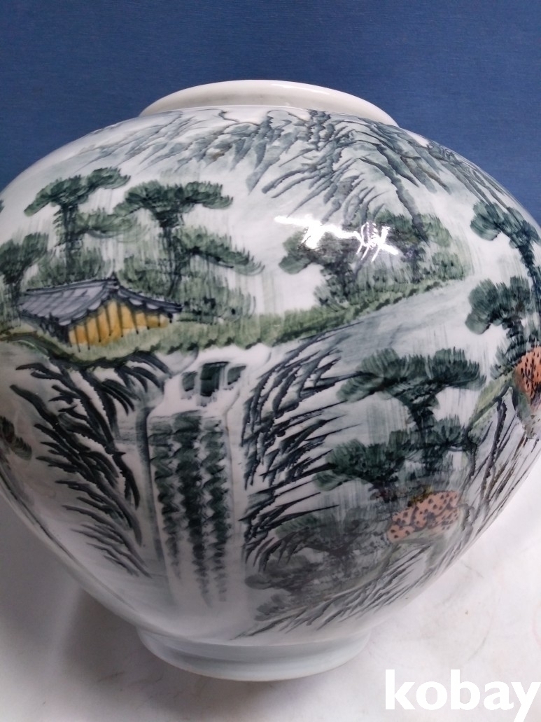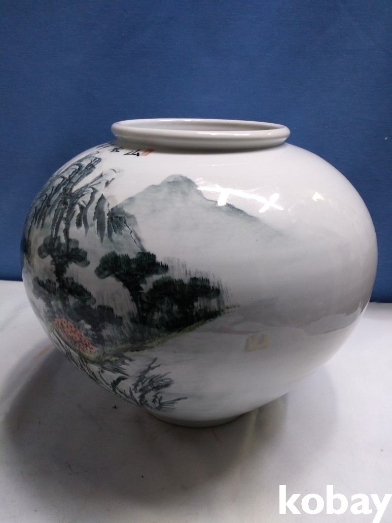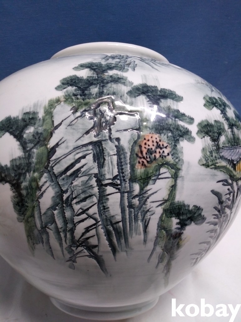 산수 문양이 손으로 만져지는 도자기 입니다.