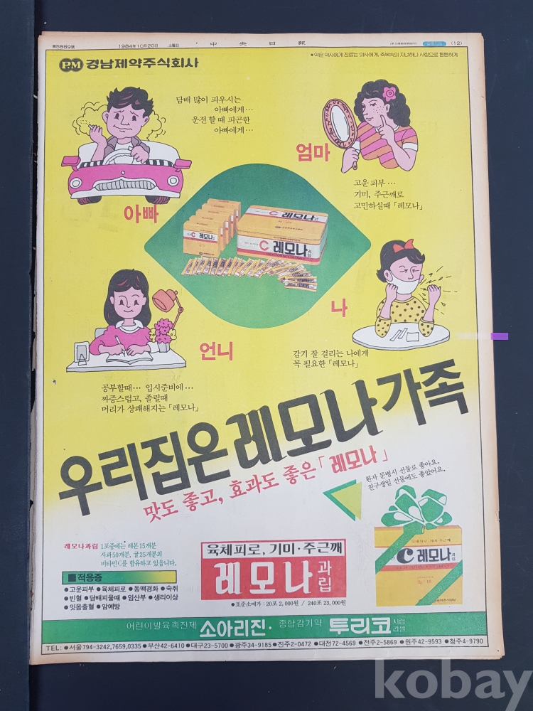 **** 1984.10.20(중앙일보)/경남제약주식회사 레모나 등 광고포함/약 12면