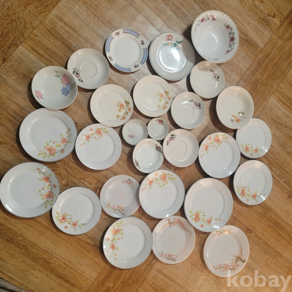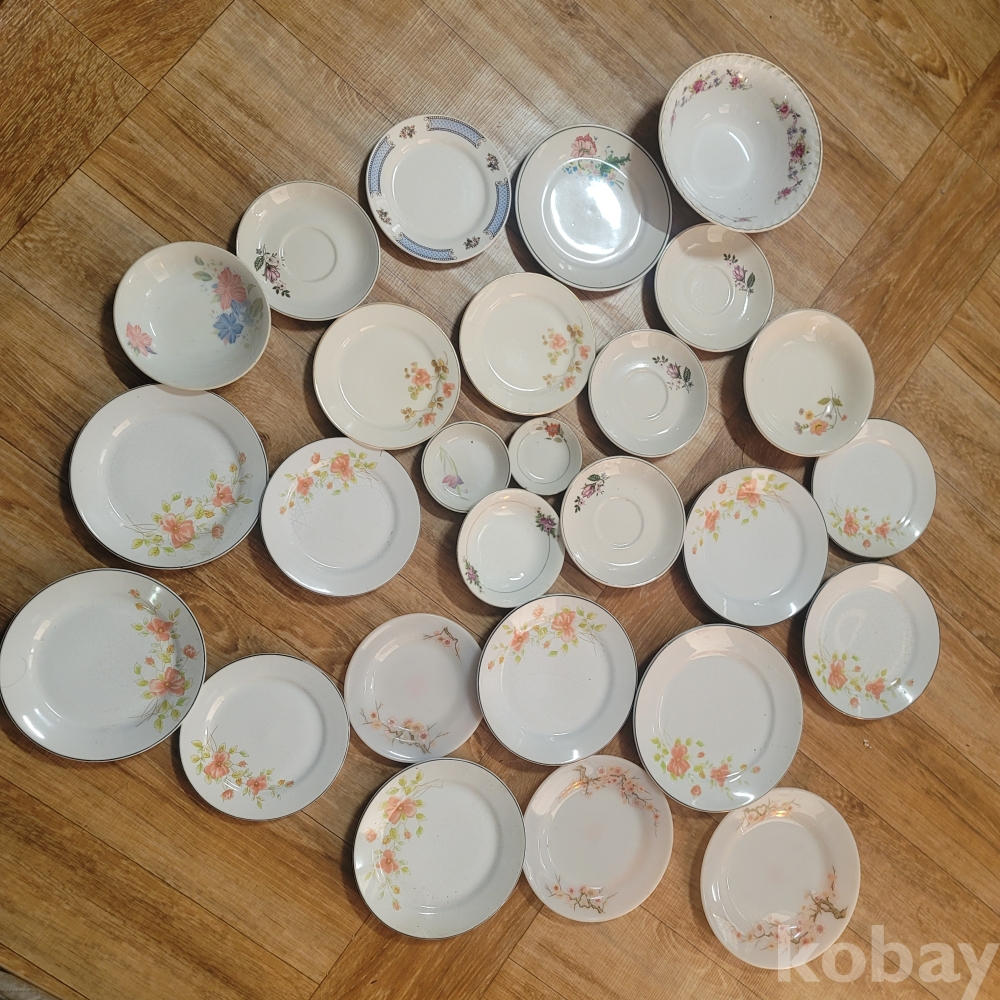 오래된 꽃모양 접시 일괄