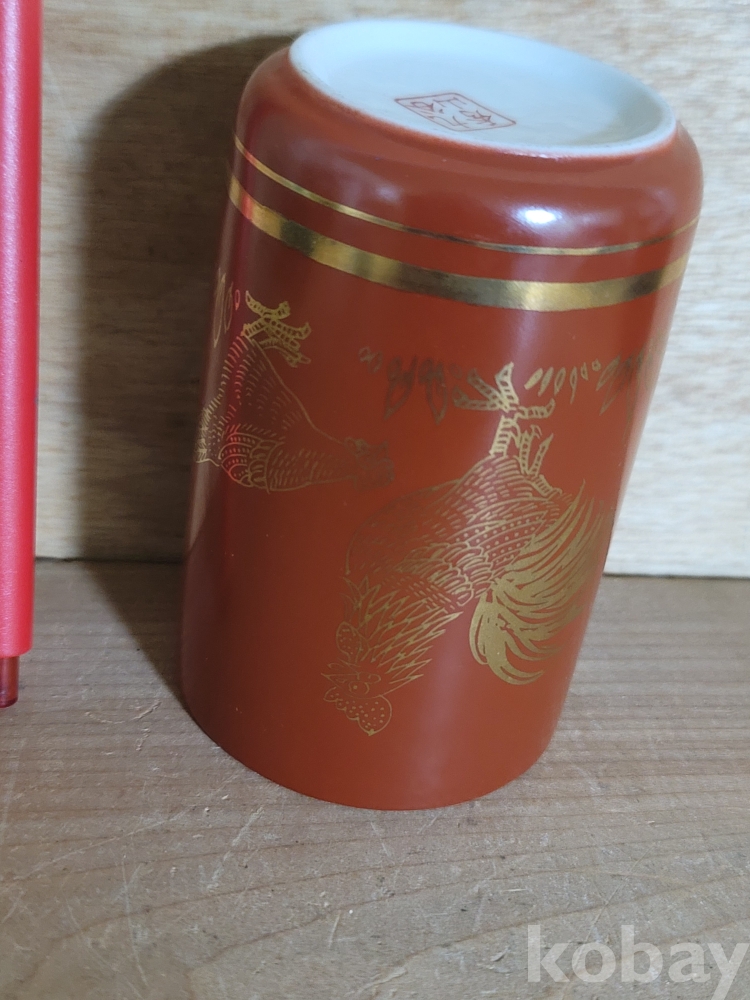 구곡 수산.. 금채 부부닭문 통형 찻잔 / 다완 청화백자 청자 구다니 다도 술잔 술자료