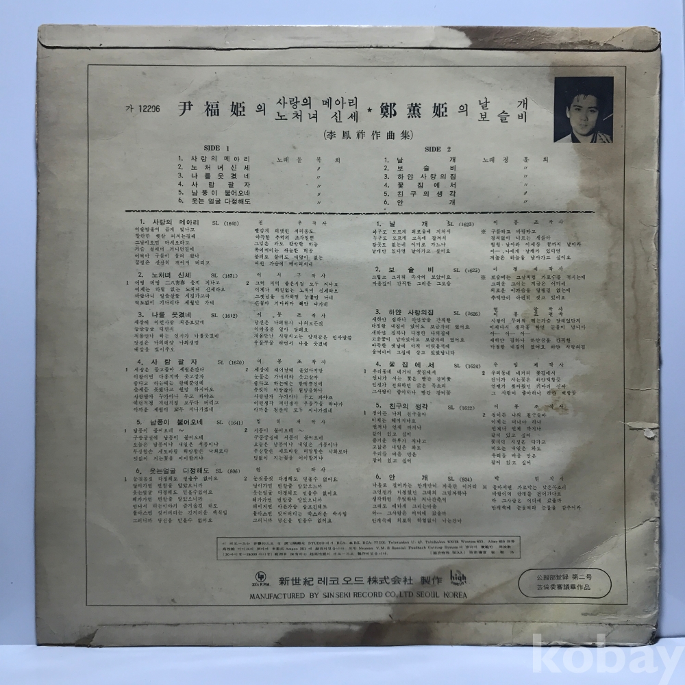 LP 160-230 정훈희 - 날개/ 윤복희 - 사랑의 메아리 68 신세기 자켓 EX- 알판 EX 작은휨