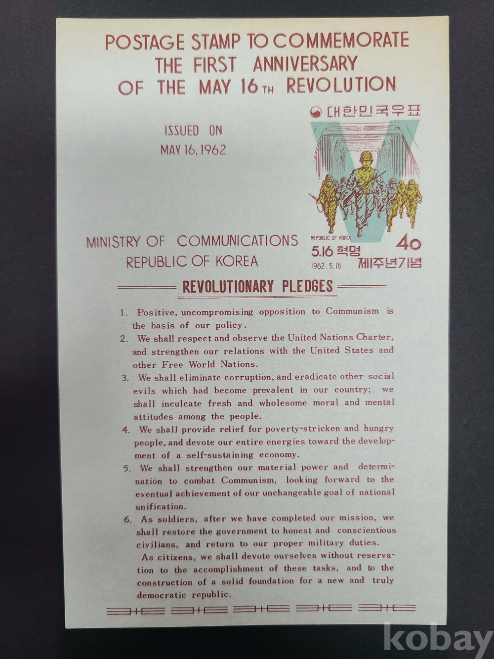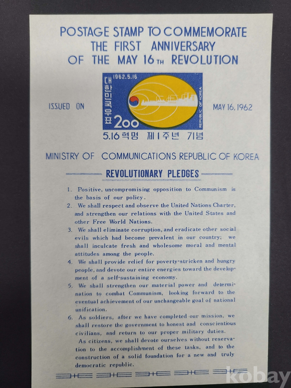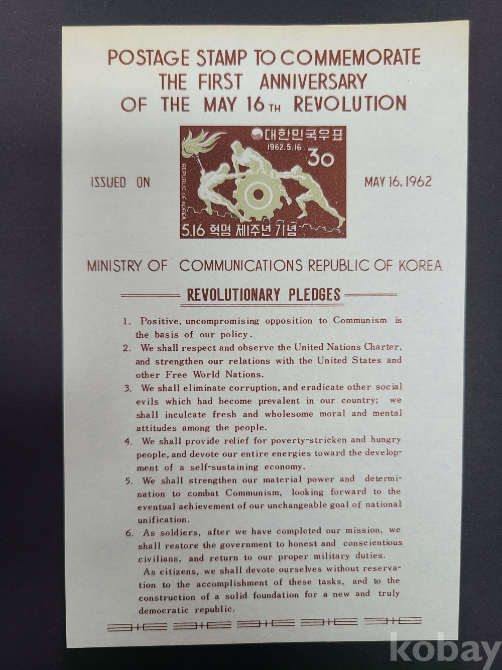 1962년 5.16혁명 1년 s/s 영문/상단부 얼룩흔적