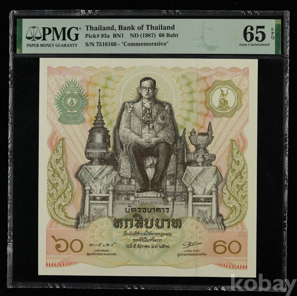 [대형] 태국 1987년 60바트 “푸미폰 국왕” PMG 65 EPQ