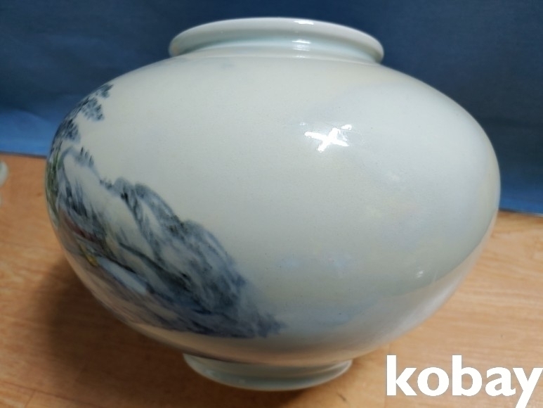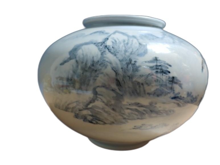 산수 풍경을 아름답게 표현한 도자기 입니다.