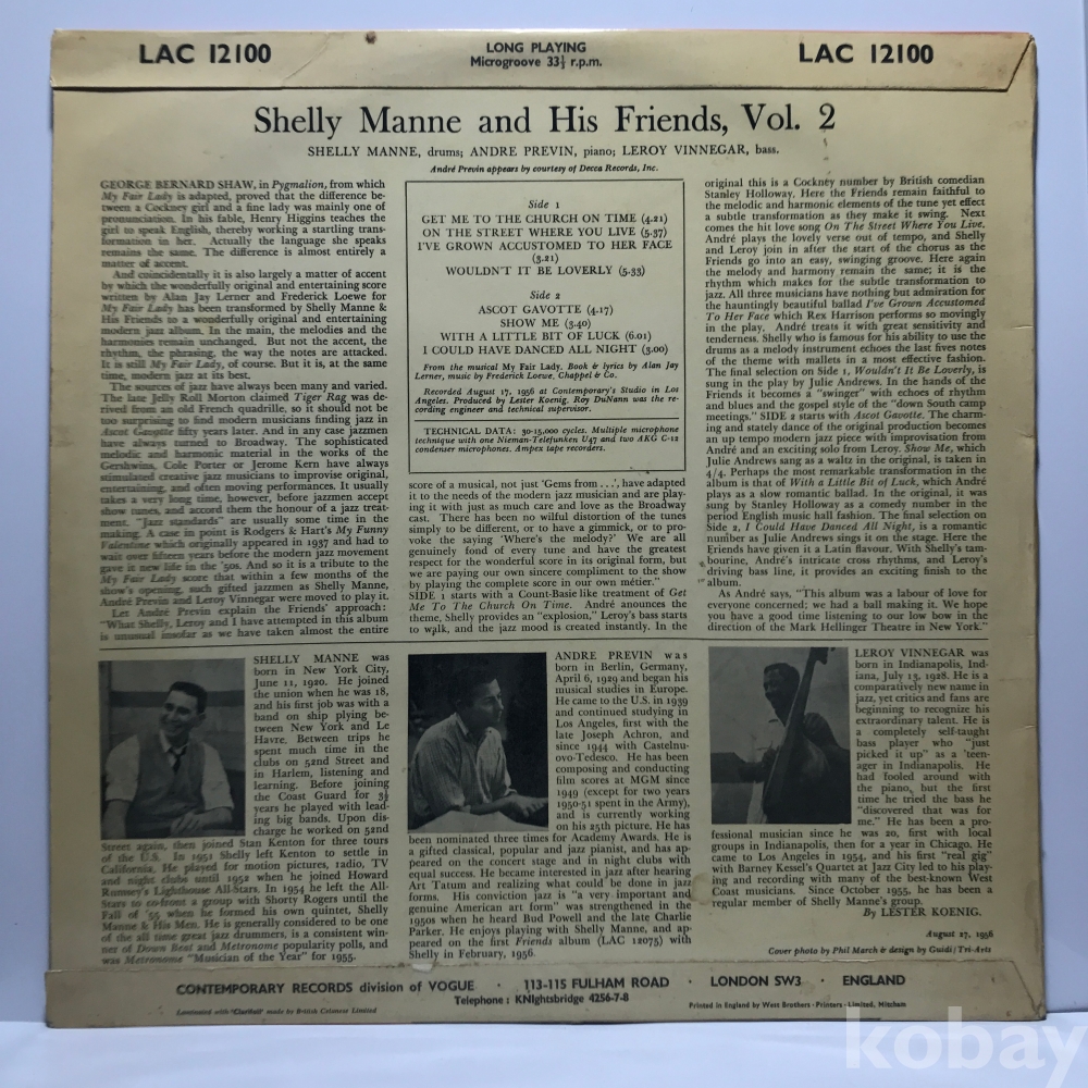 LP 10,800-33 Shelly Manne & his Friends modern jazz performances of songs from MY FAIR LADY 수입 자켓 EX 알판 EX