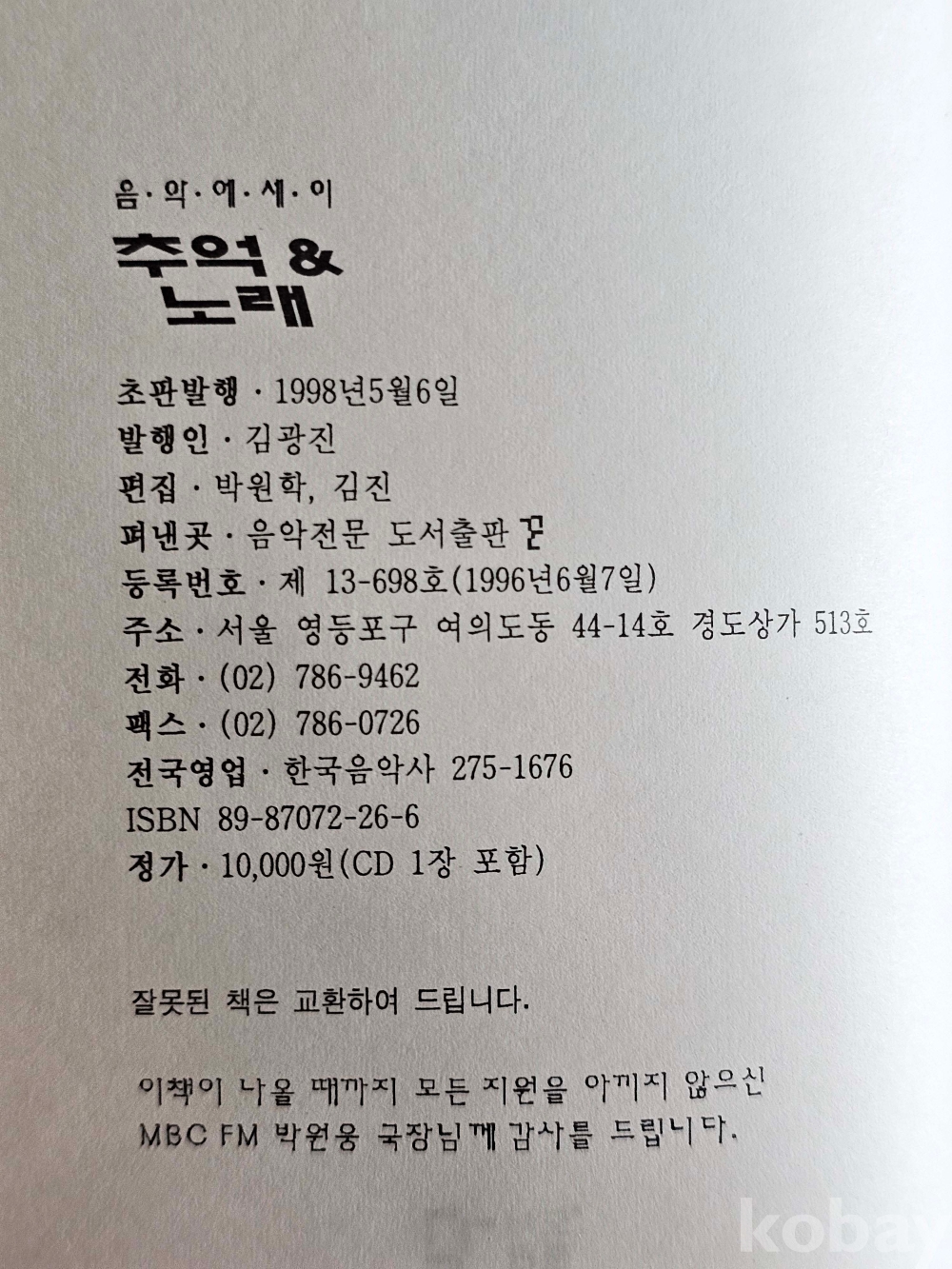 물 품 명 | 추억 & 노래 / MBC FM 골든디스크 사연소개 / 산울림 김창완 자료 / 미개봉 CD 포함 / 1998년 / 도서출판 꾼 |