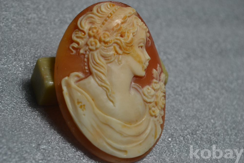 아름다운 귀족여인의 옆모습 얼굴이 정교하고 고급스럽게 손조각되어 만들어진 고급 핸드메이드 까메오 작품 입니다. (사진참조)