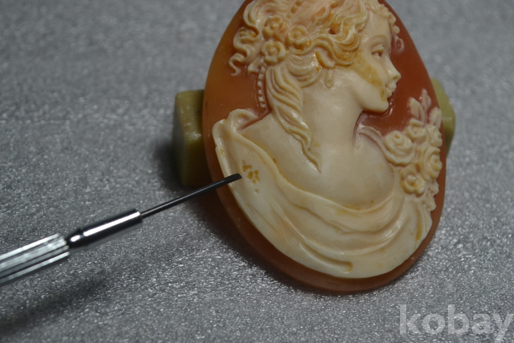 미세한 형태이므로 까메오 작품에는 전혀 흠되는 부분은 아닙니다. 거의 티안나는 상태 입니다.