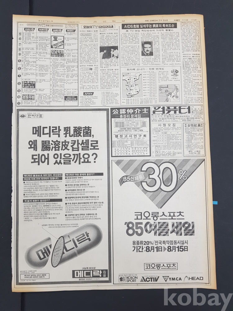 **** 1985.07.31(조선일보)/주식회사 피죤 VO5샴푸 광고포함/약 12면