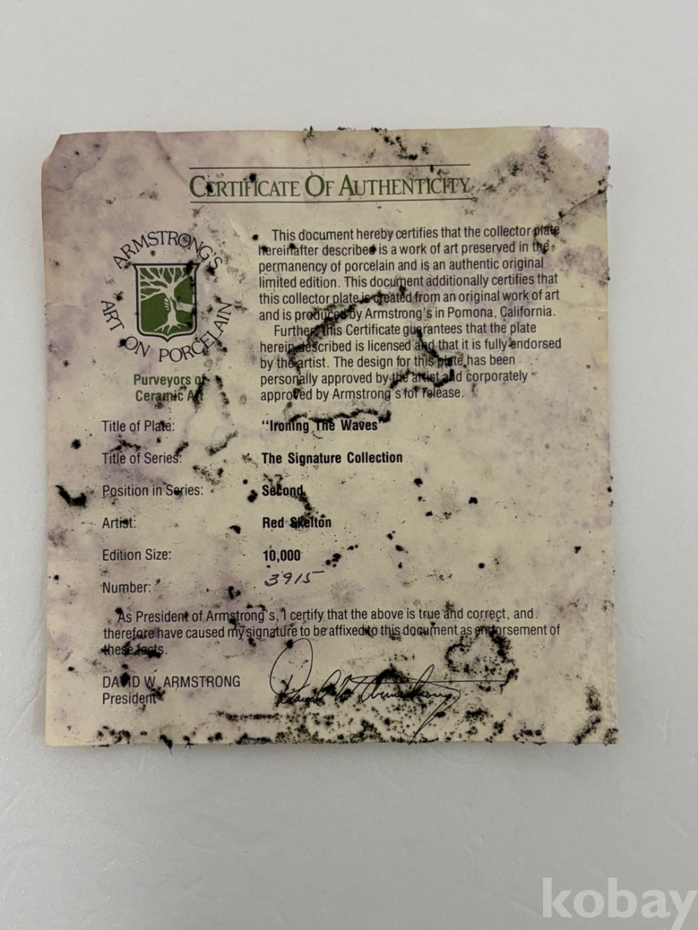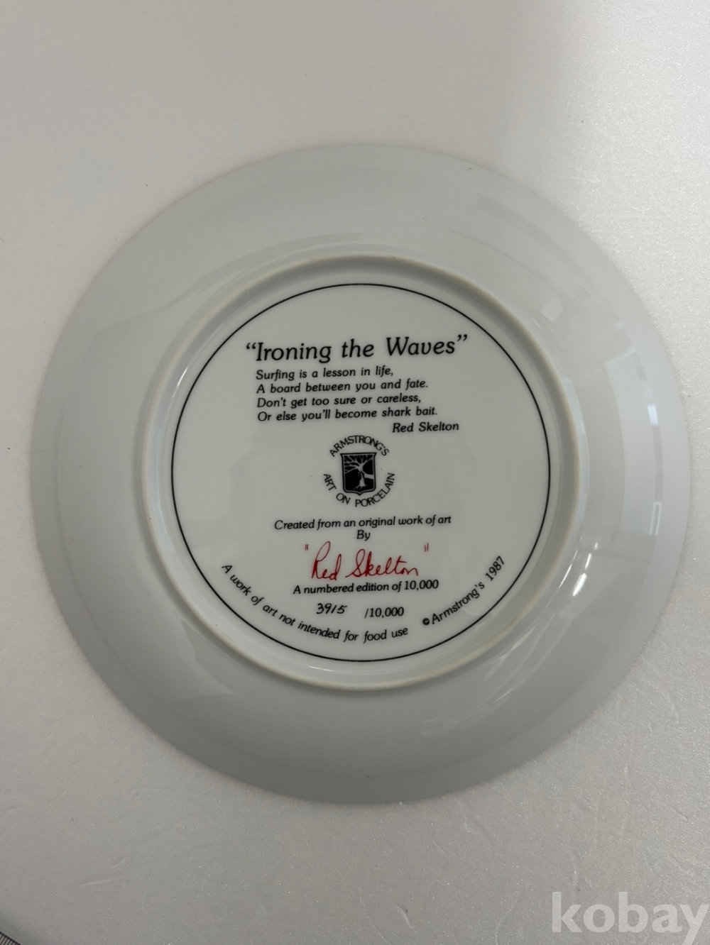 레드 스켈튼의 아이로닝 더 웨이브스 한정판 접시, 10,000개 중 3915번 장식용으로 제작된 1987년 작품입니다.