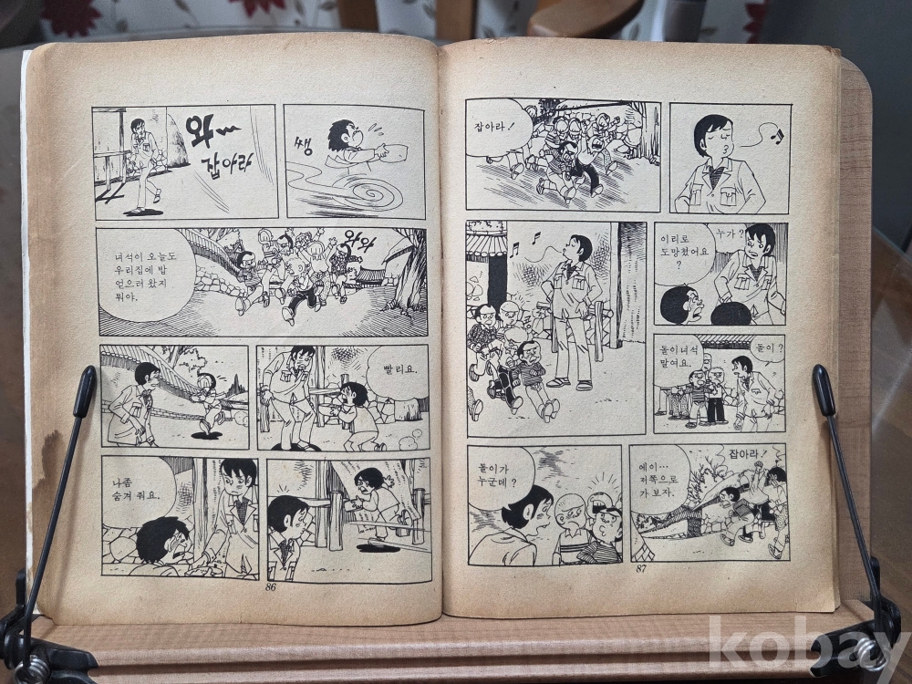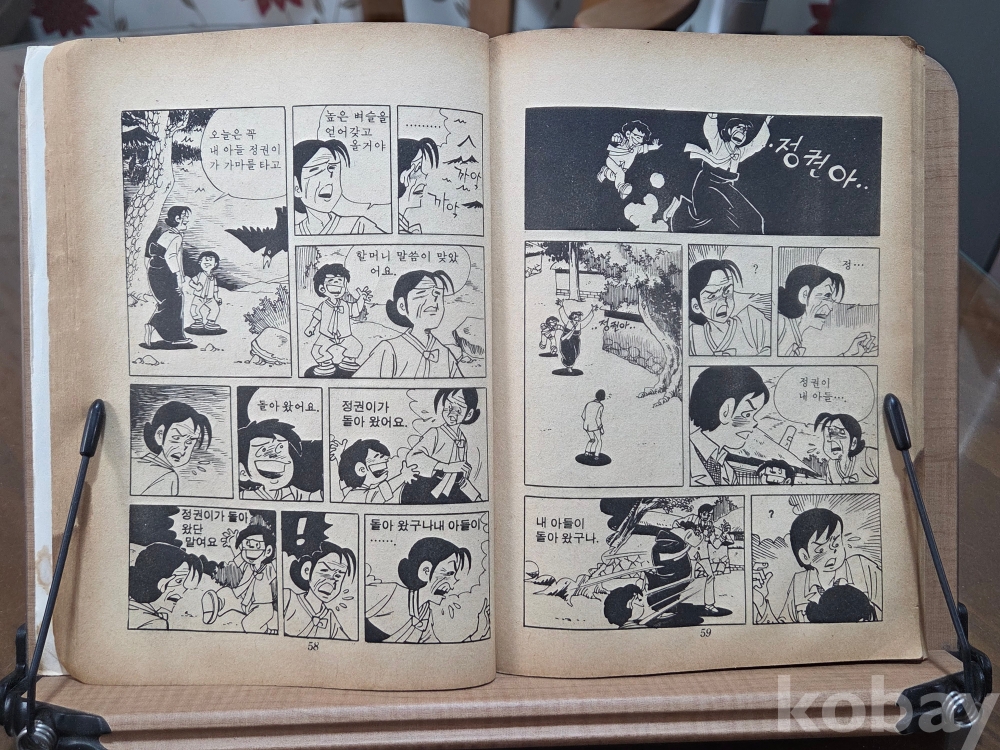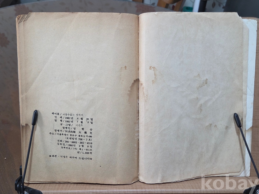 펼쳐진 본문에는 하단 쪽에서 얼룩이 보였다 안 보였다 합니다.
