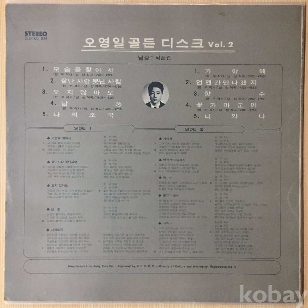 ⊙ 1977년 / 성음레코드 - SEL-100 034