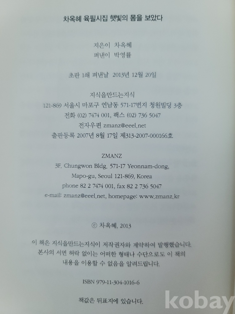 '지식을 만드는 지식'에서 '육필시집'으로 발행.