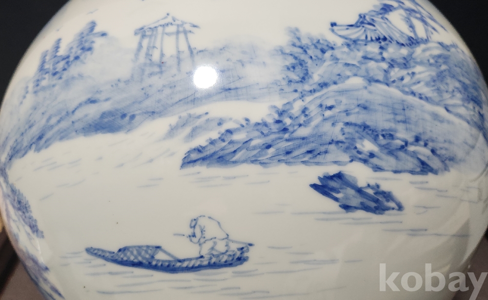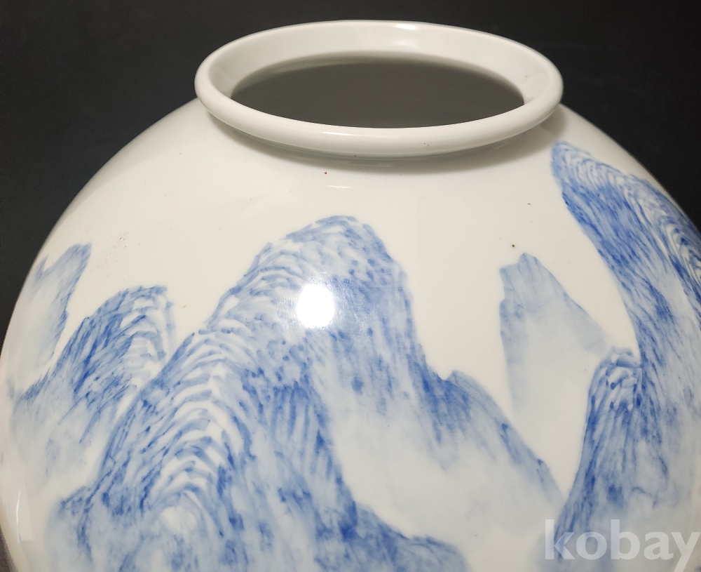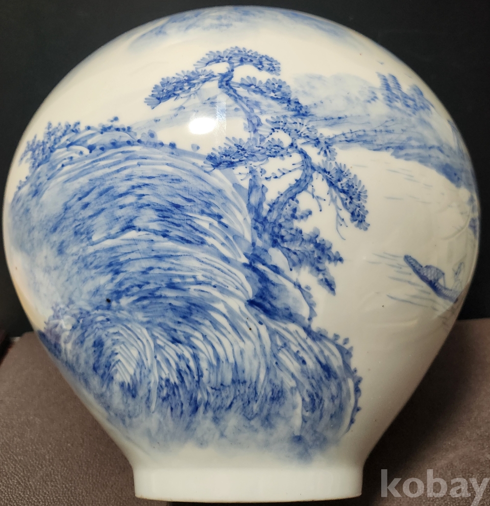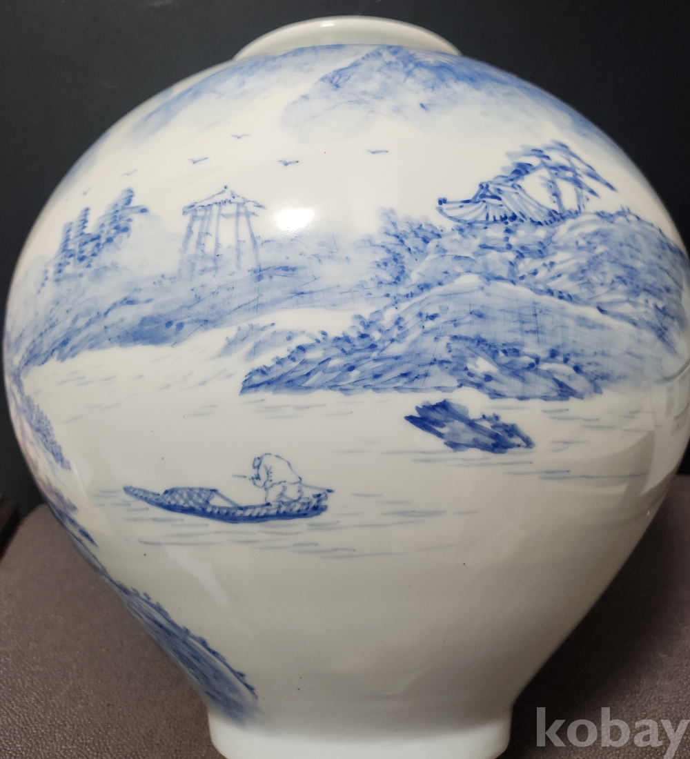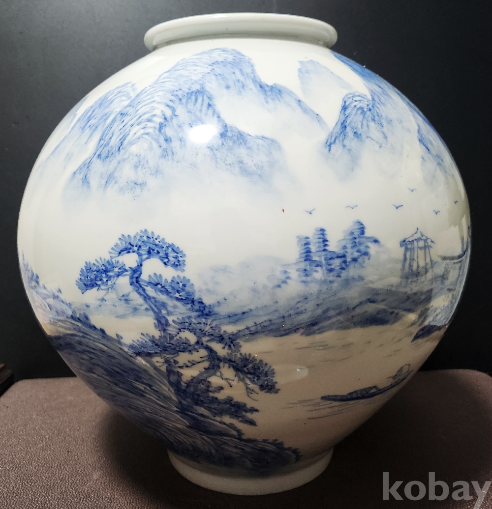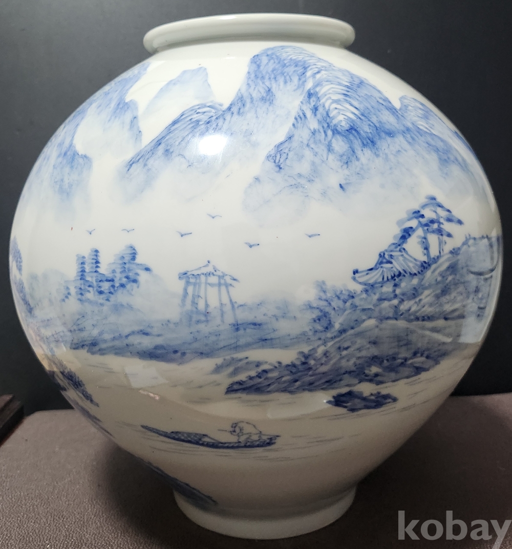 < 1호 도예 명장 > 고성[古成] 조병호[曺秉浩] 백자청화강상어락도문호 白磁靑華江上魚樂圖紋壺