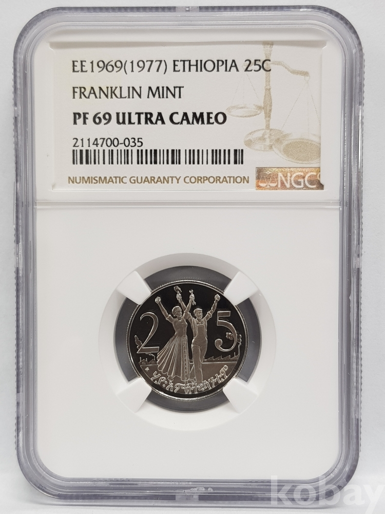 - 1977년 에티오피아 25센트 NGC PF 69 ULTRA CAMEO 그레이딩 주화