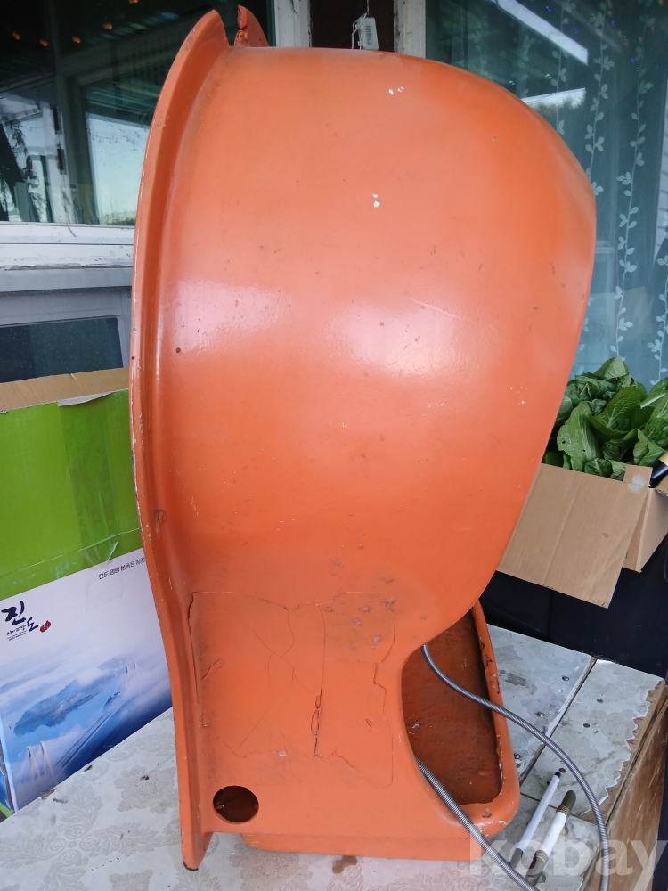 ☆재질은 FRP 이며 시인성이 좋은 주황색 도장을 채책하였으며 하단부에 전화번호부를 수납할 수 있는 공간을 구비하고 있습니다.
