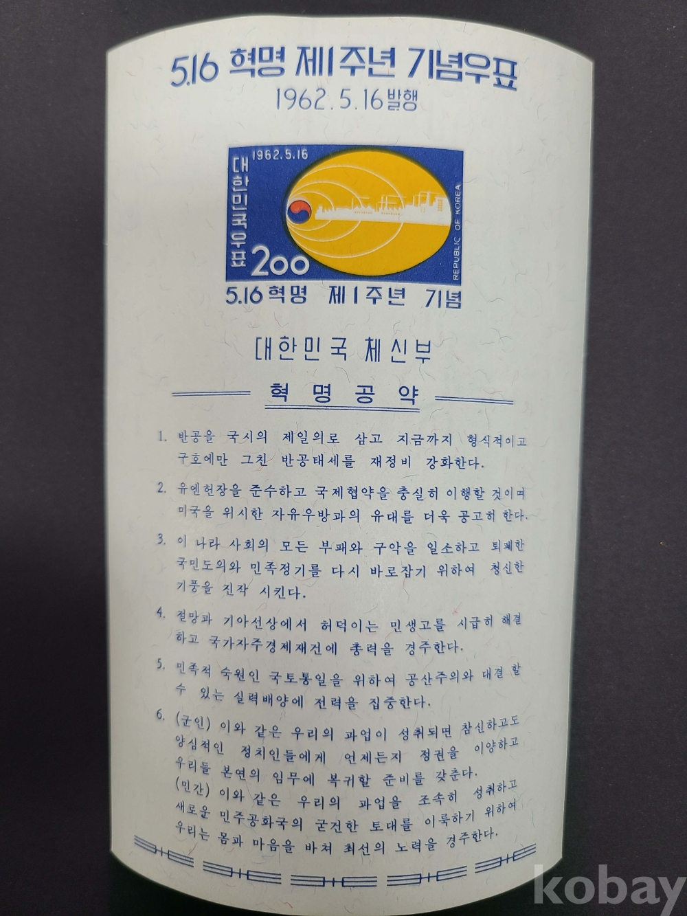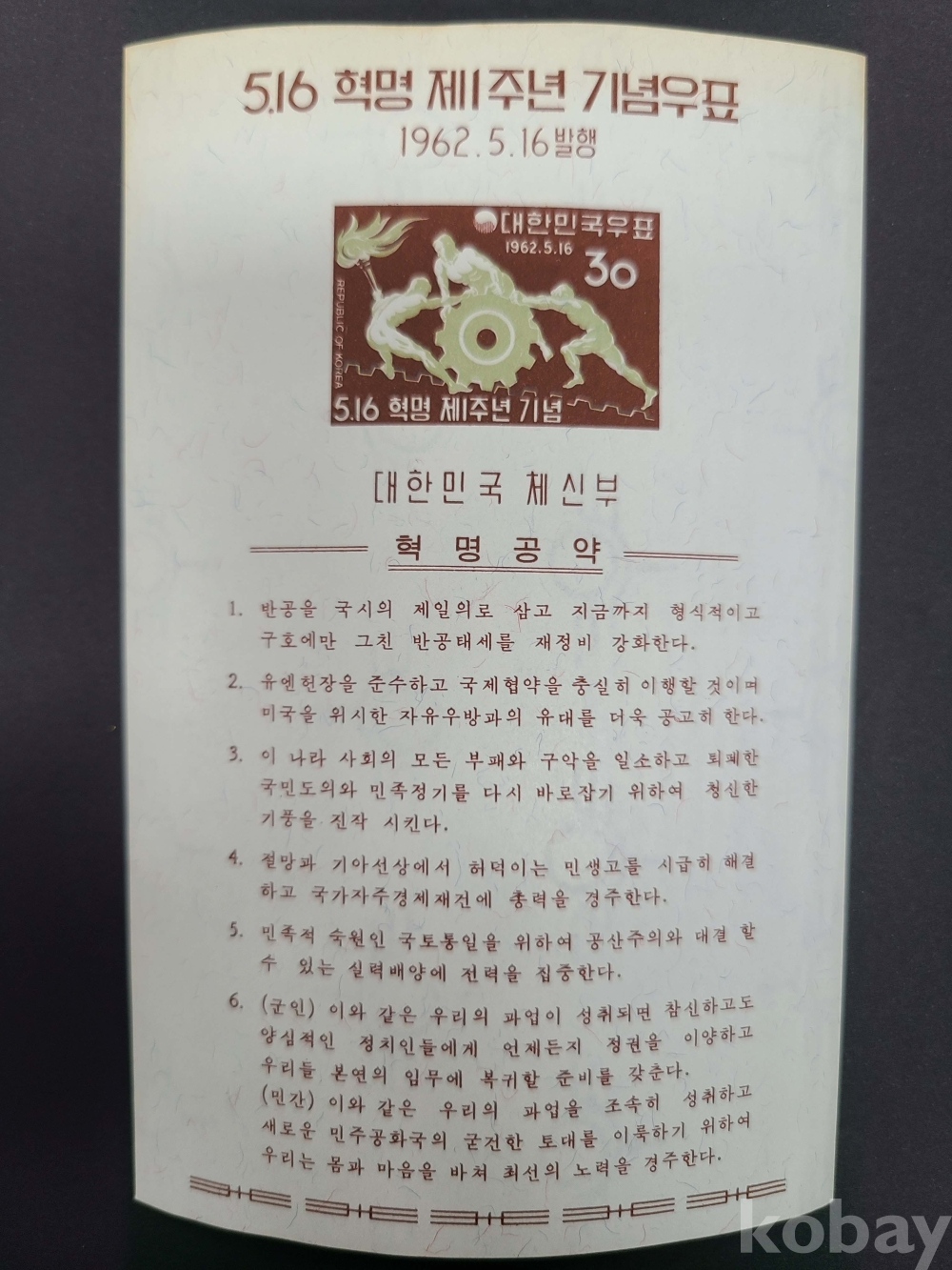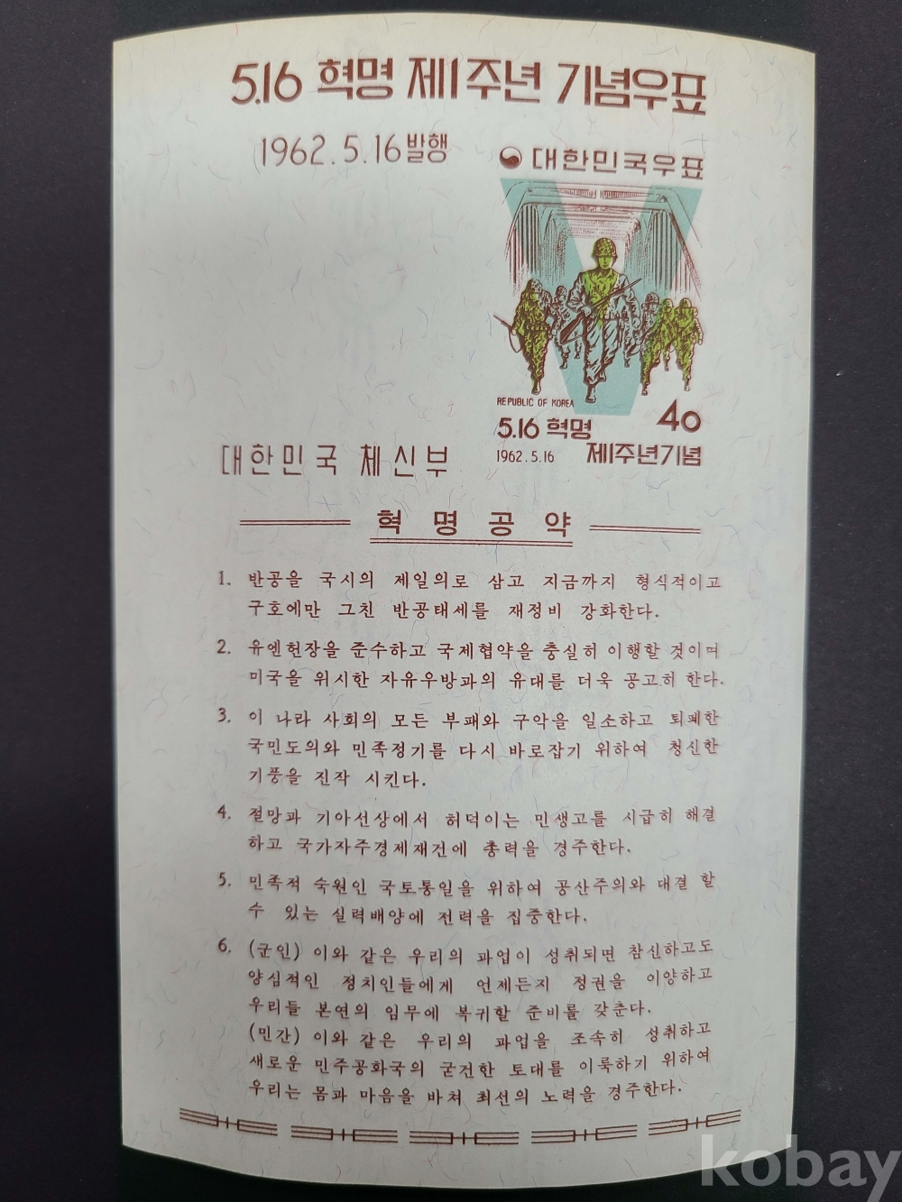 1962년 5.16혁명 1년 s/s 국문/힌지,상단 약간얼룩흔적
