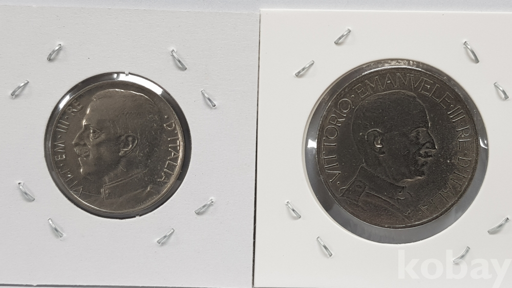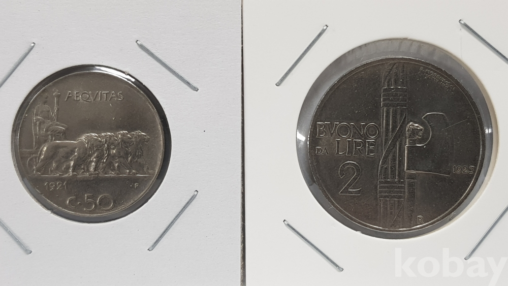 - 이탈리아 1921년 50센테시미 주화 2종 모음