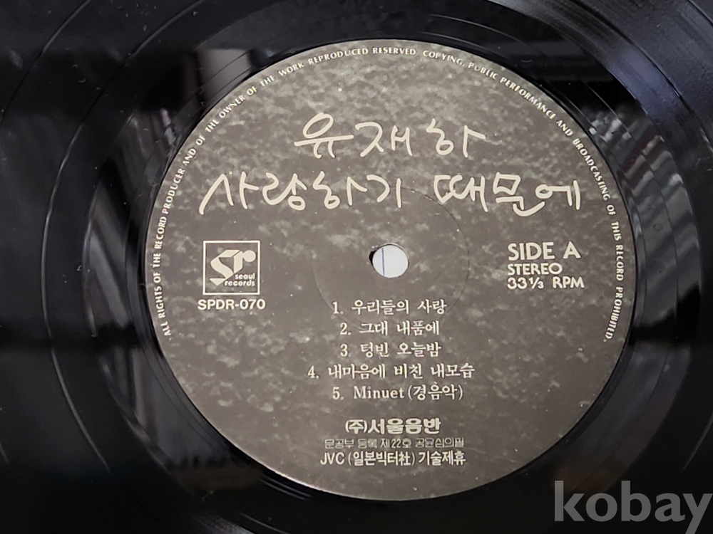 유재하의 역사적인 솔로앨범 1988 서울음반 초반 LP입니다.