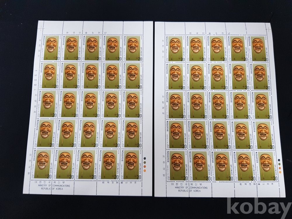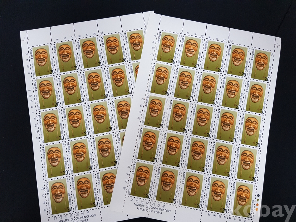 - 미사용 1979년 한국미술 5000년 제 4차 하회탈 전지 2매 일괄