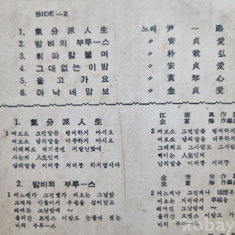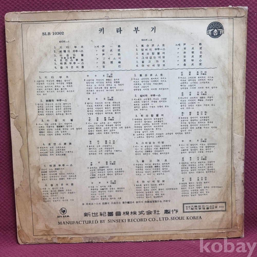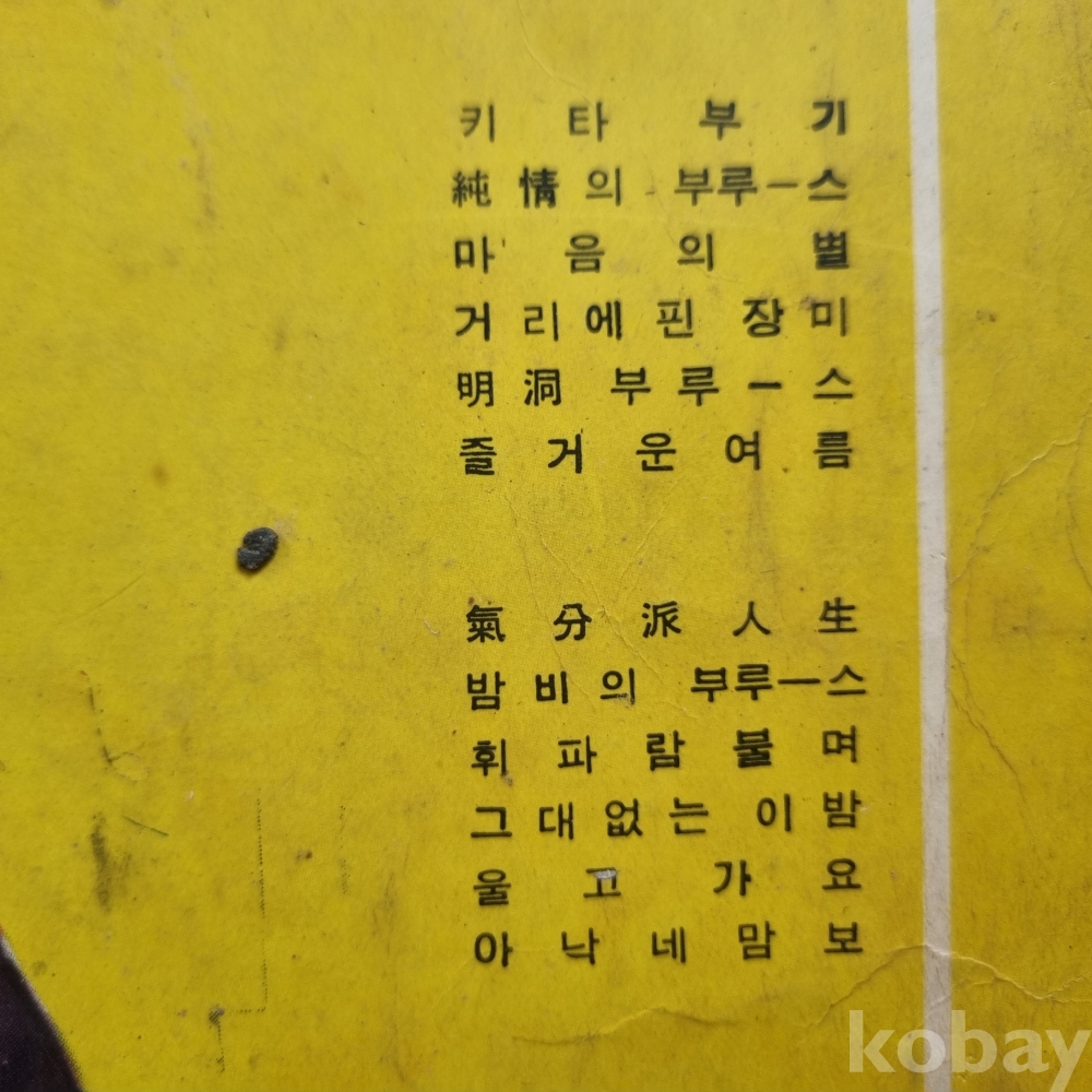 | 자켓상태 | VG : 주름, 접힘, 모서리 찢김 다수 | 음반상태 | VG : 생활 기스 다수, 가벼운 노이즈 존재 | 발매정보 | 초반 | 가사지여부 | 무 |