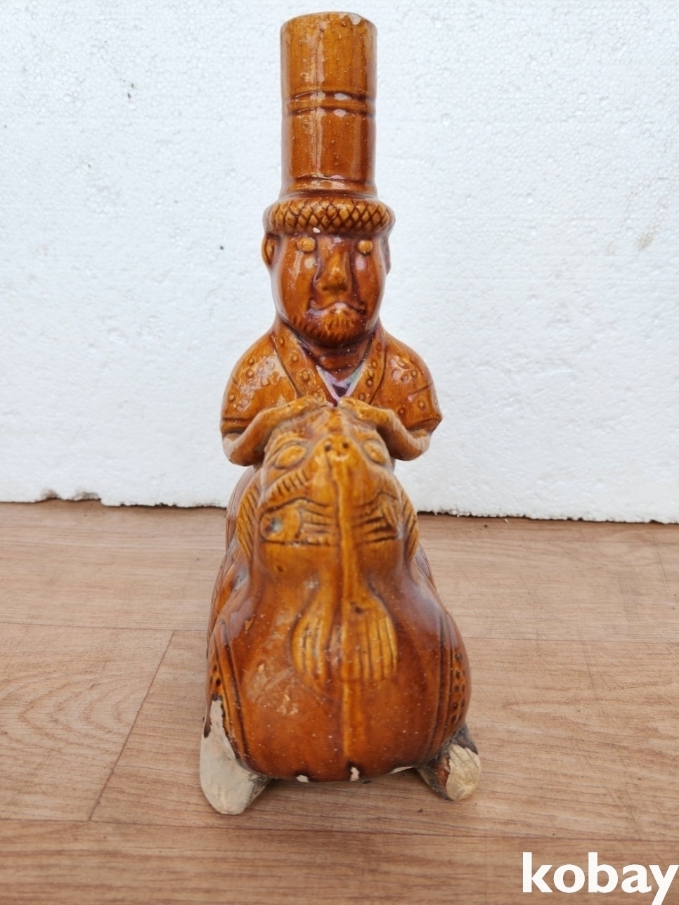 해태를 탄 인물 형상 도자기 입니다.