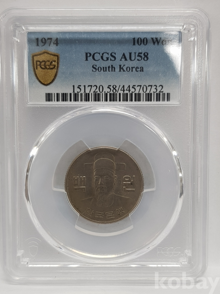 - 특년도 1974년 100원 / 100주 PCGS AU 58 그레이딩 인증 주화