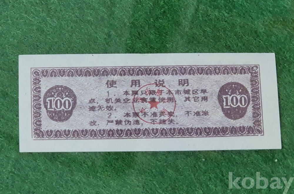 本溪市細粮票 100克(본계시세양표 100극)-1989년