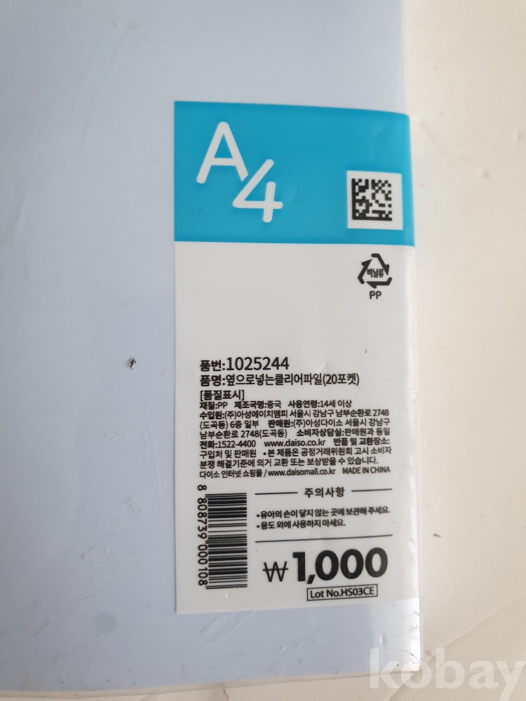 [천원경매] 12-302 A4사이즈 20장 투명 파일(미개봉제품, 2개)