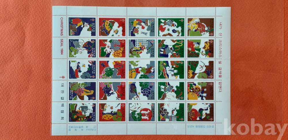 1984년 한국의 전래동화 크리스마스 씰 25매 전지 입니다.